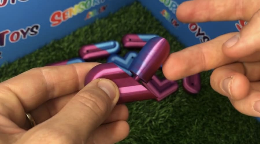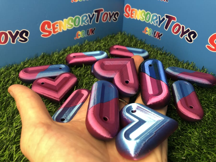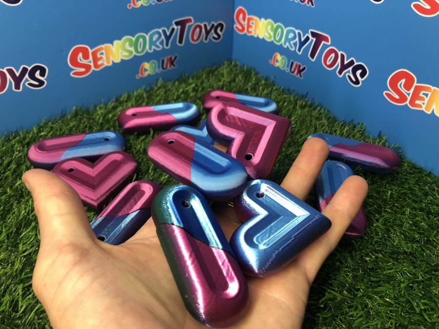 Flick It To Click It! A new fidget toy design where you flick it to create a heart. This very popular 3D printed toy has a fantastic blue and purple metallic style finish. A must have rare fidget gadget for anyone looking to expand their collection of sensory /fidget toy collection. Check out the studio video below!