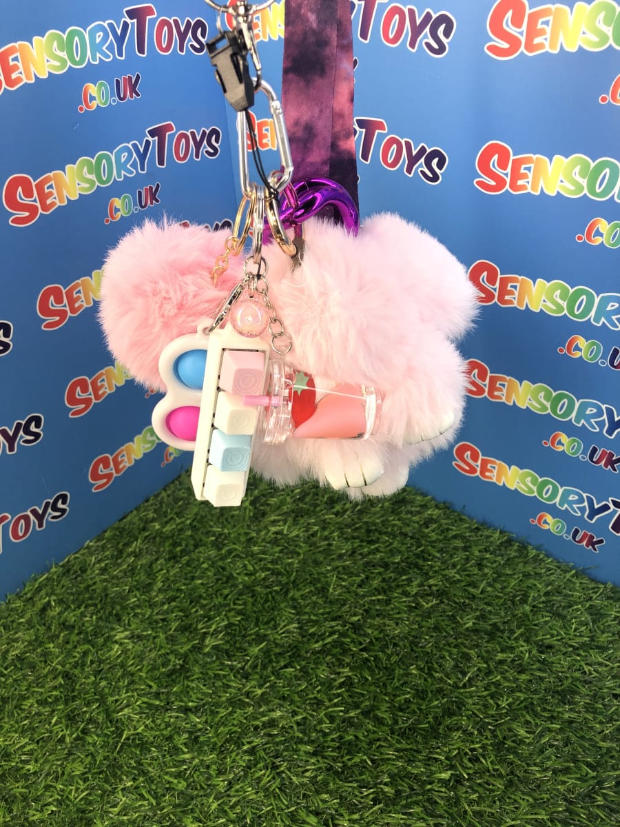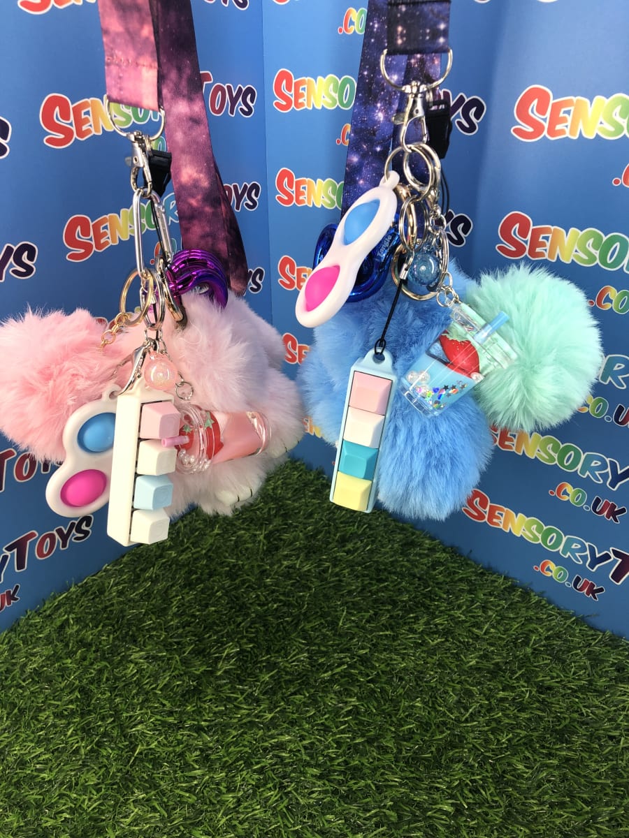 Introducing our sensory keychains! Available in either a or pink theme, this sensory lanyard is packed with many comforting sensory items that you can take on the go. Brilliant for relieving stress and anxiety as you take a moment to refocus your mind.