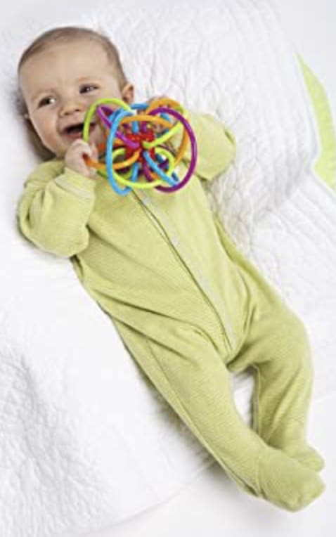 An excellent addition to any sensory baby toy box, this teether toy provides relief and sensory stimulation for babies and young children. High quality materials and built for the purpose of parts being bitten.