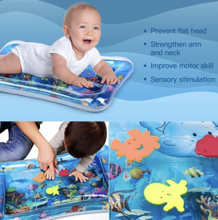 Our baby sensory water mat are made of durable materials, so there is no need to worry about any messy accidents. Your baby's senses will be fascinated by the bright sea world graphic and cute floating toys in the water. Parents can also have a fun time for watching the baby laugh and play. It also helps with vital tummy time, helping to strengthen your baby’s leg and arm muscles to prepare them to crawl.