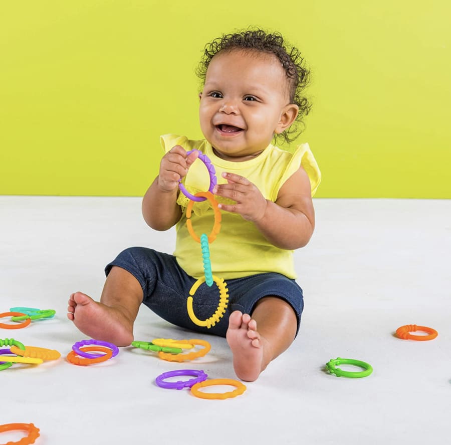 These Linking Shapes will be something you are extremely pleased you have to hand for your baby. They're bendy, colourful and are able to link together with ease. While your baby stays busy twisting, squeezing, bending, and doing whatever they please with these plastic links, you will be shocked at the development in their abilities in attaching toys to play areas etc. It'll greatly improve their concentration and motor skills, with their hand eye coordination improving too. They're the ideal sensory toy for your baby!