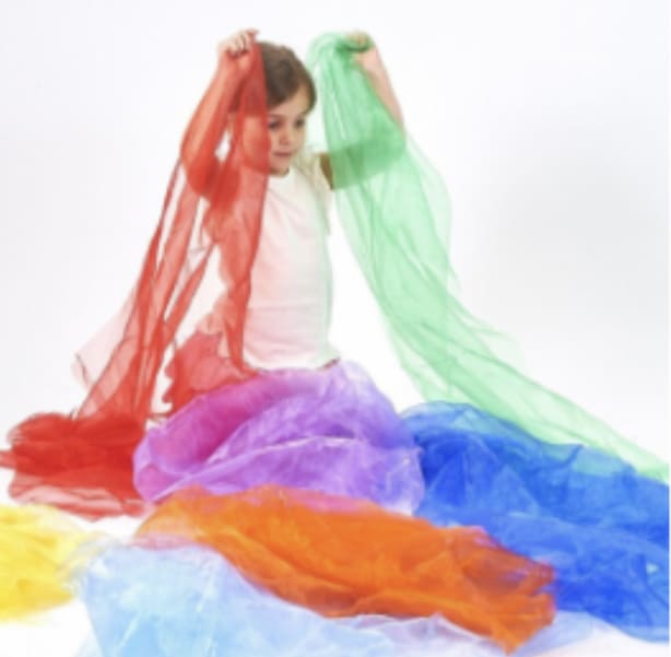 Our giant sensory scarves are great for stimulating a number of senses, helping with touch and visual stimulation. They are fun to play with and incorporate into sensory play / learning. Due to their vast range of colours they can also be used for skill building and development.