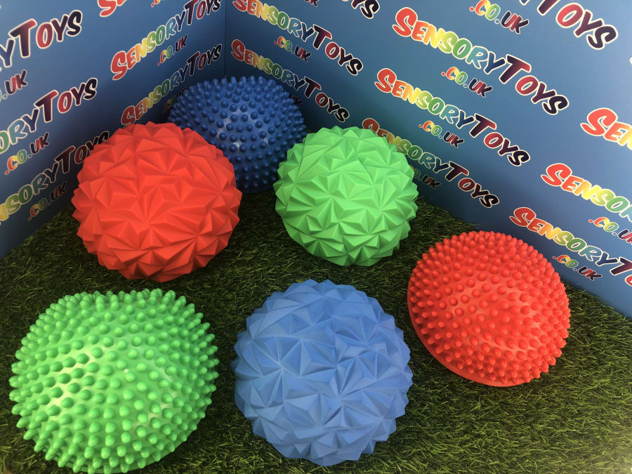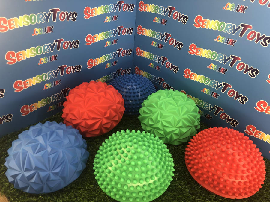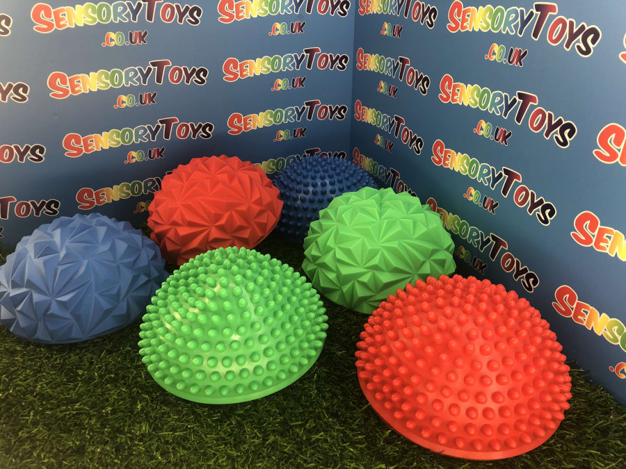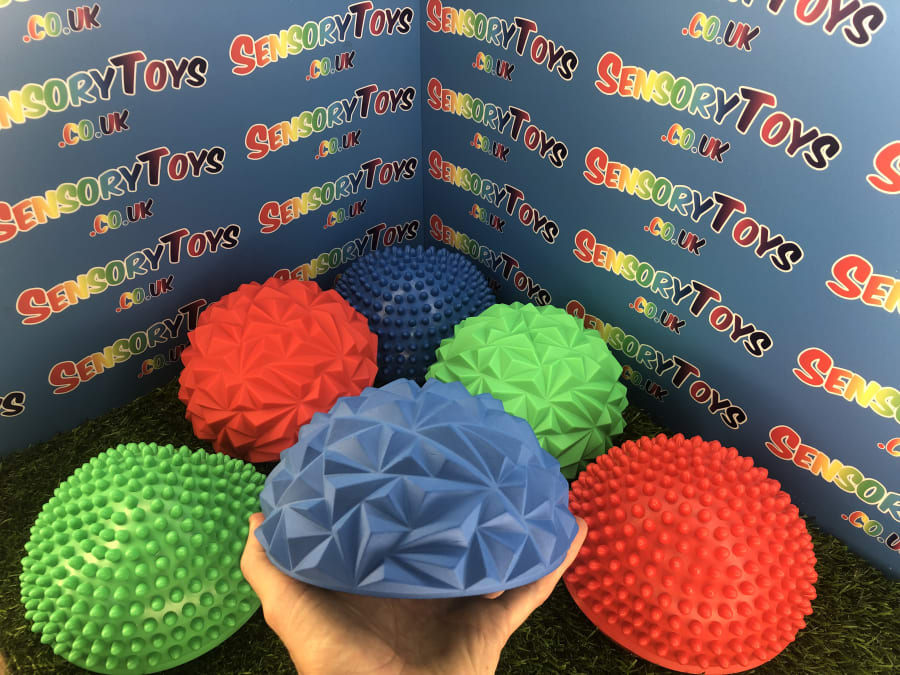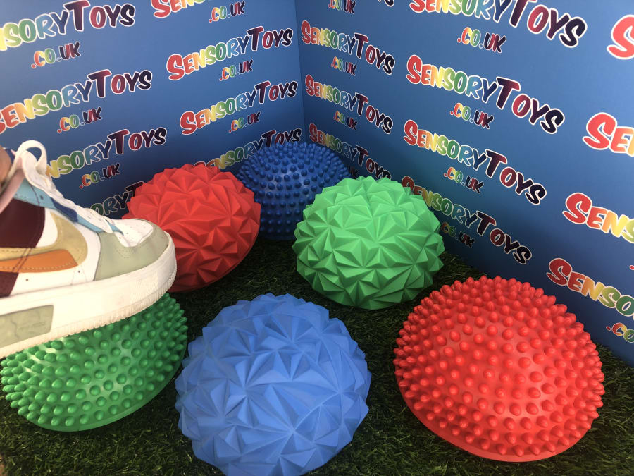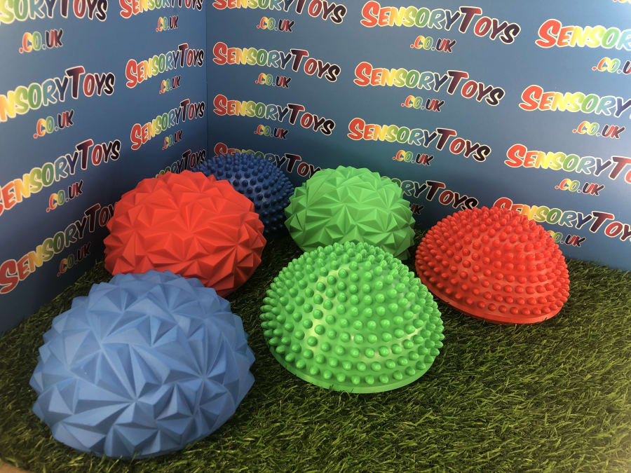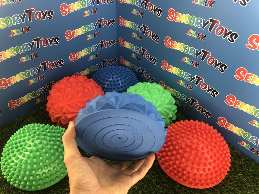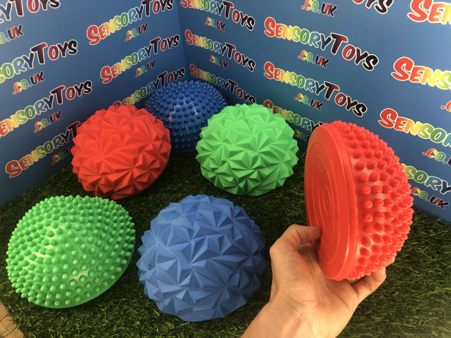 Introducing a set of six sensory movement dome tiles designed to promote physical activity and enhance learning through play. These tiles feature a non-slip base and a textured dome surface, which can be inflated or deflated to change the surface reaction when stepped on, offering an engaging experience for users as they navigate the stones and follow designated paths. The textured design not only provides sensory stimulation but also facilitates better grip, making them ideal for the development and improvement of essential motor skills during playtime.