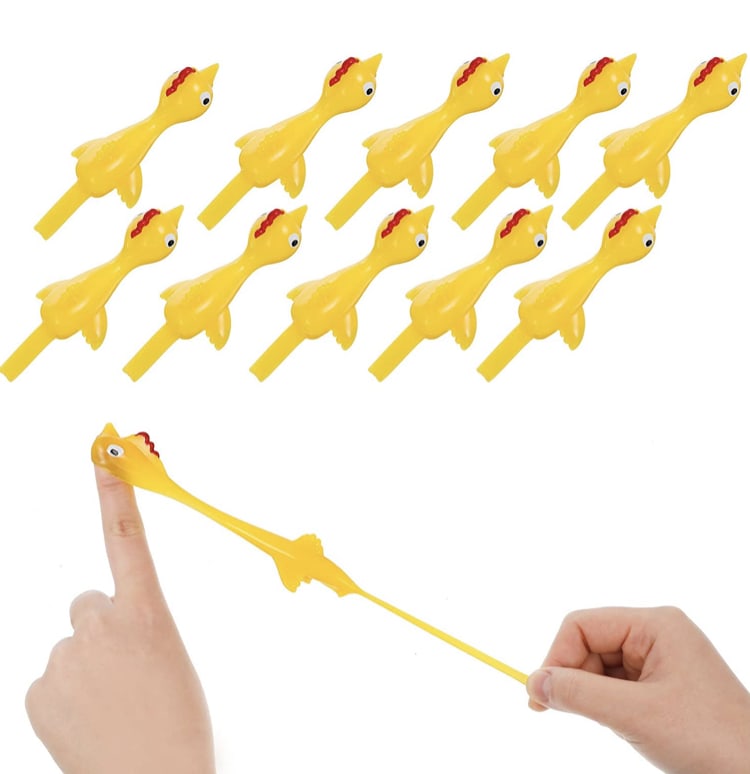 A hilarious flicking chicken toy guaranteed to bring fits of giggles. Place on the finger and pull back the chicken legs to shoot towards your target. These chickens hold the magic ability to hold onto walls.