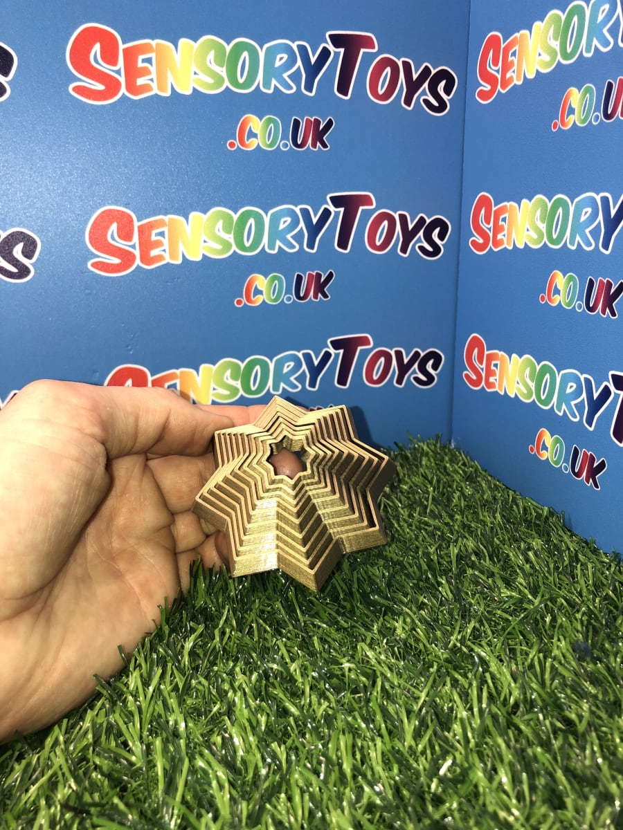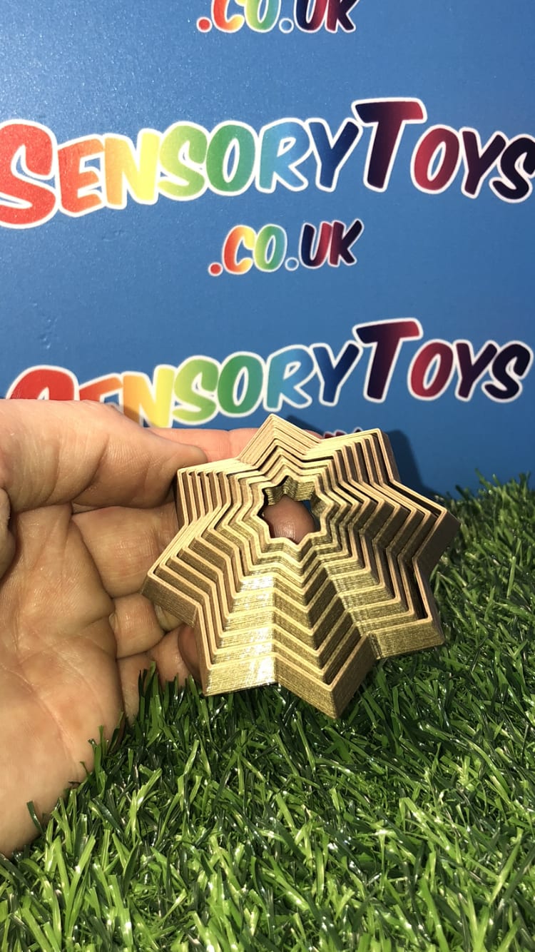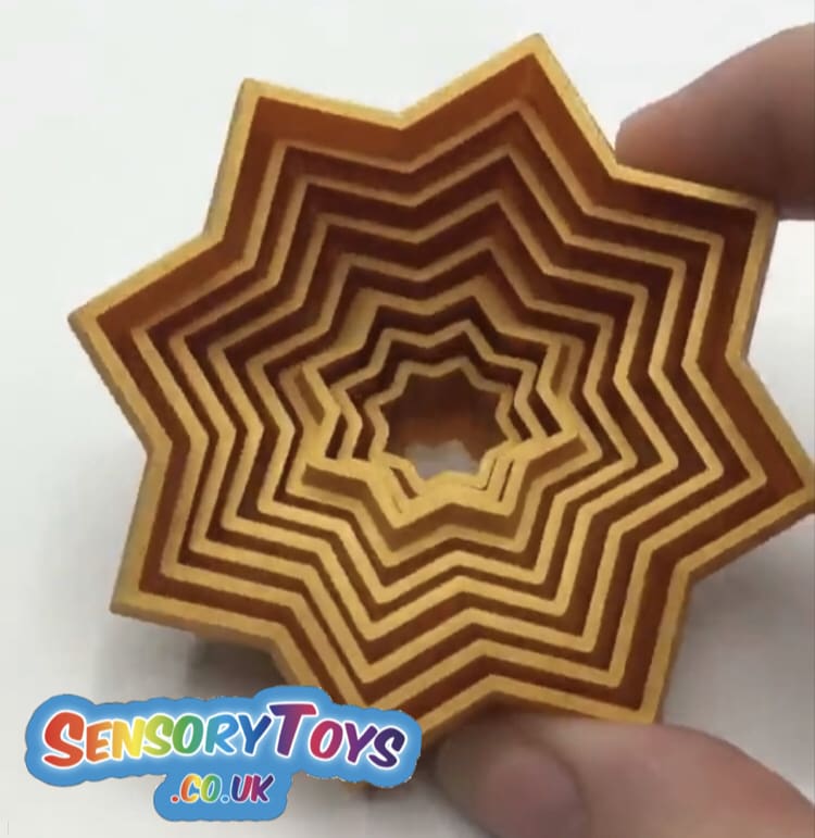 Sensory fidget stars are a brand new sensory product that is very satisfying to watch! By moving the outer star layers you can create a visually stimulating movement. Check out our sensory star video below to see it first hand in action. Just words can't put into detail how cool this sensory toy is!