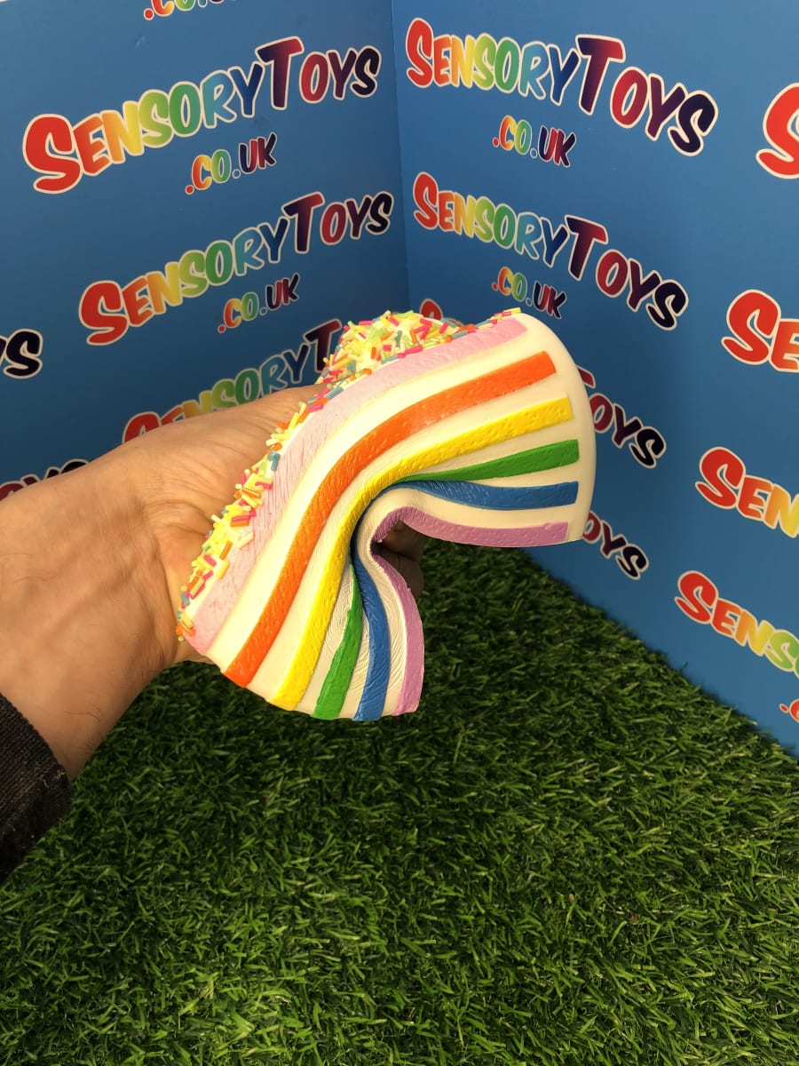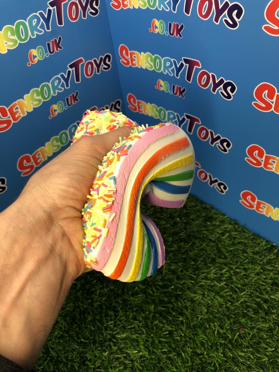 Bright, colourful and topped with hundreds of rainbow sprinkles! It’s an eye catching squishy sensory toy which we highly recommend has a brilliant birthday gift or add to an existing toy collection. A unique and rare to find squishy fidget toy that’s one of our most popular products. Suitable for children 6+.