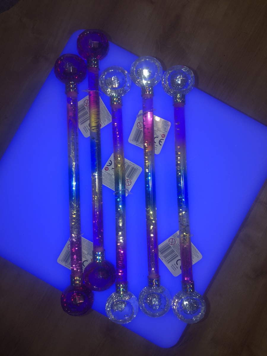 Let your children practise their motor skills and hand-eye coordination with our glitter sensory baton. The baton is filled with water and glitter which creates the rainbow colours and also allows for lovely soothing noises as the water moves back and forth.