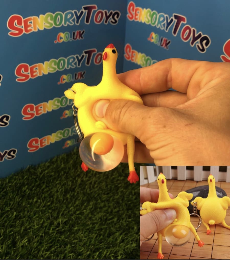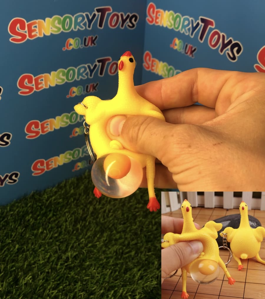 Have you ever wondered what would happen if you squeezed a chicken? Have you ever wanted your own chicken? Then we’ve got just the hen for you! A novelty squeeze toy that lays an egg when squished. A hilarious novelty sensory play toy. Suitable for ages 5+