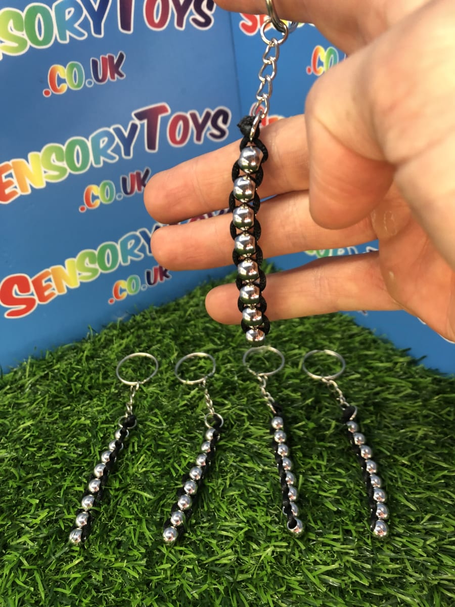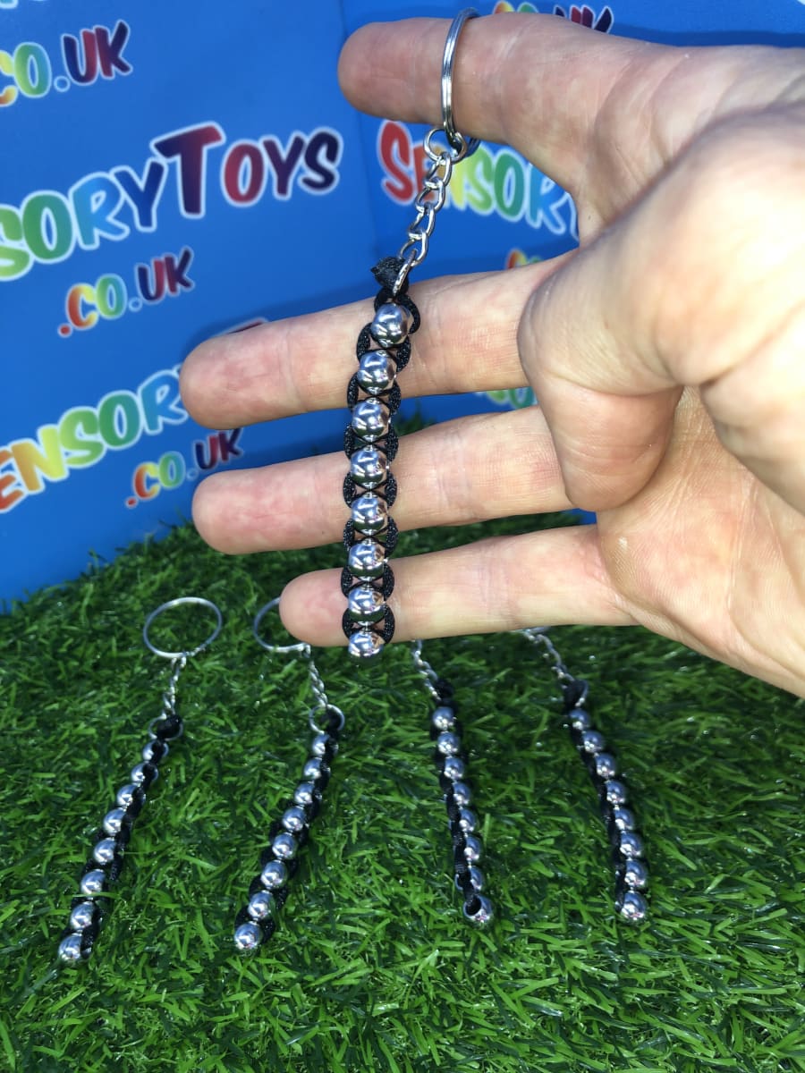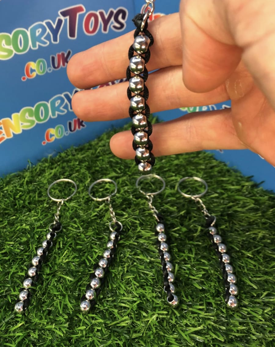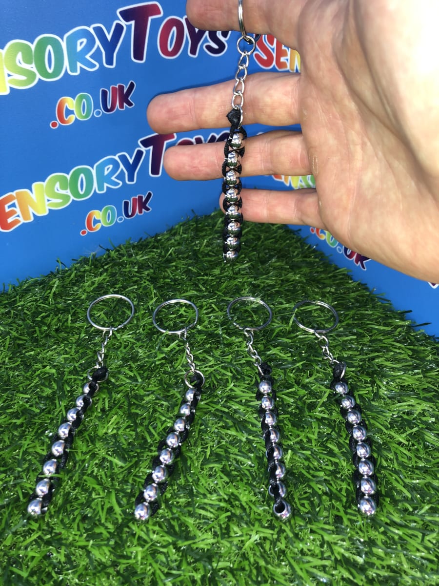 A discrete high quality metal fidget toy you won’t find anywhere else! Featuring a professional stainless finish on the balls and jet black interweaving rope. In total there are eight interlocked metal balls that can be rotated upwards or downwards thats really satisfying to feel. Something you can fiddle with throughout the day without drawing any attention and minimal hand movement to use. The keychain attachment is optional to make it a great carry along fidget or tucked away in a pocket for when it’s needed. If you love high quality fidget products then this is a great catch for you.