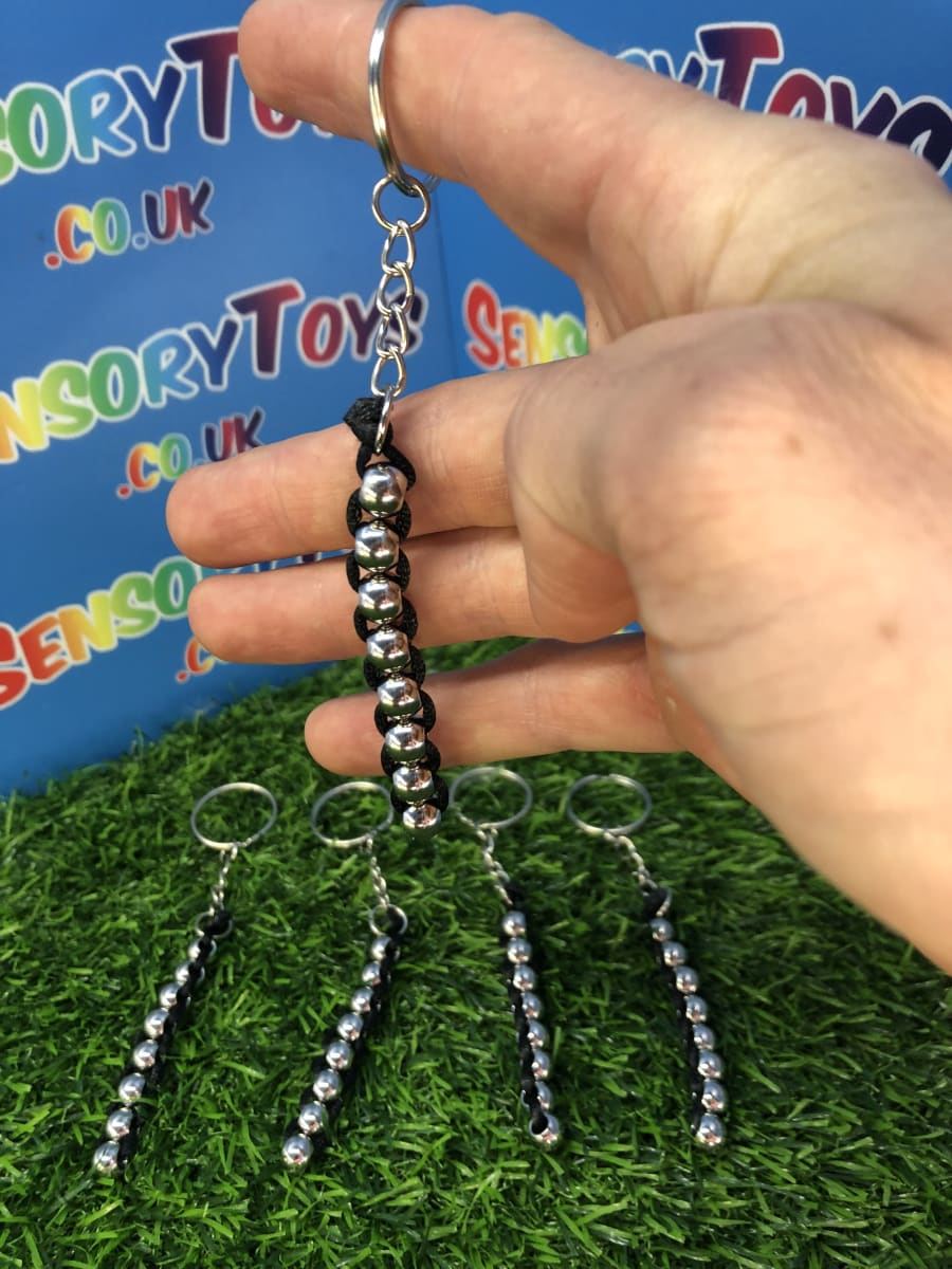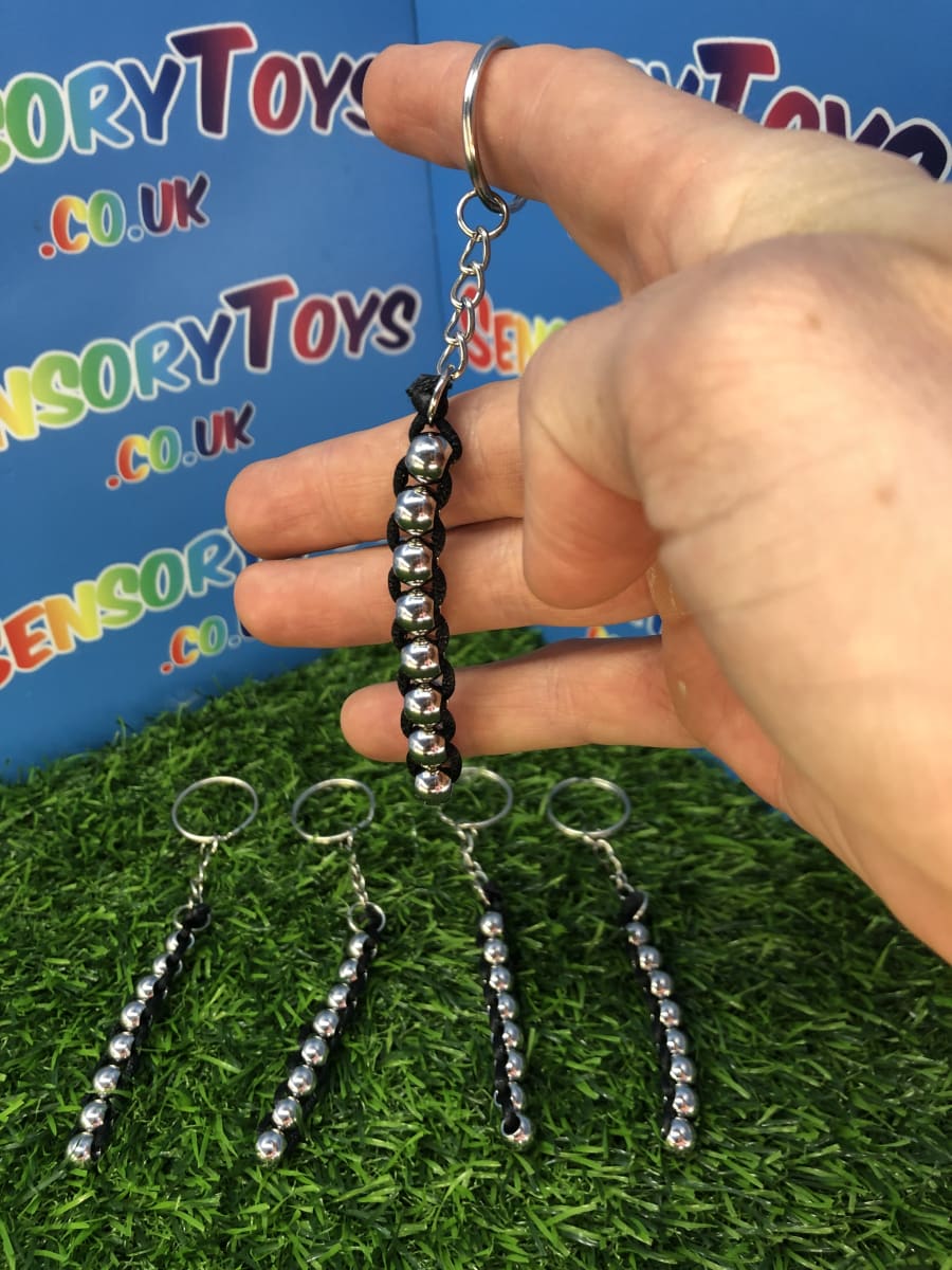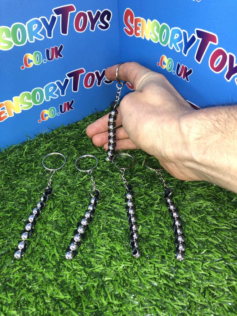 A discrete high quality metal fidget toy you won’t find anywhere else! Featuring a professional stainless finish on the balls and jet black interweaving rope. In total there are eight interlocked metal balls that can be rotated upwards or downwards thats really satisfying to feel. Something you can fiddle with throughout the day without drawing any attention and minimal hand movement to use. The keychain attachment is optional to make it a great carry along fidget or tucked away in a pocket for when it’s needed. If you love high quality fidget products then this is a great catch for you.