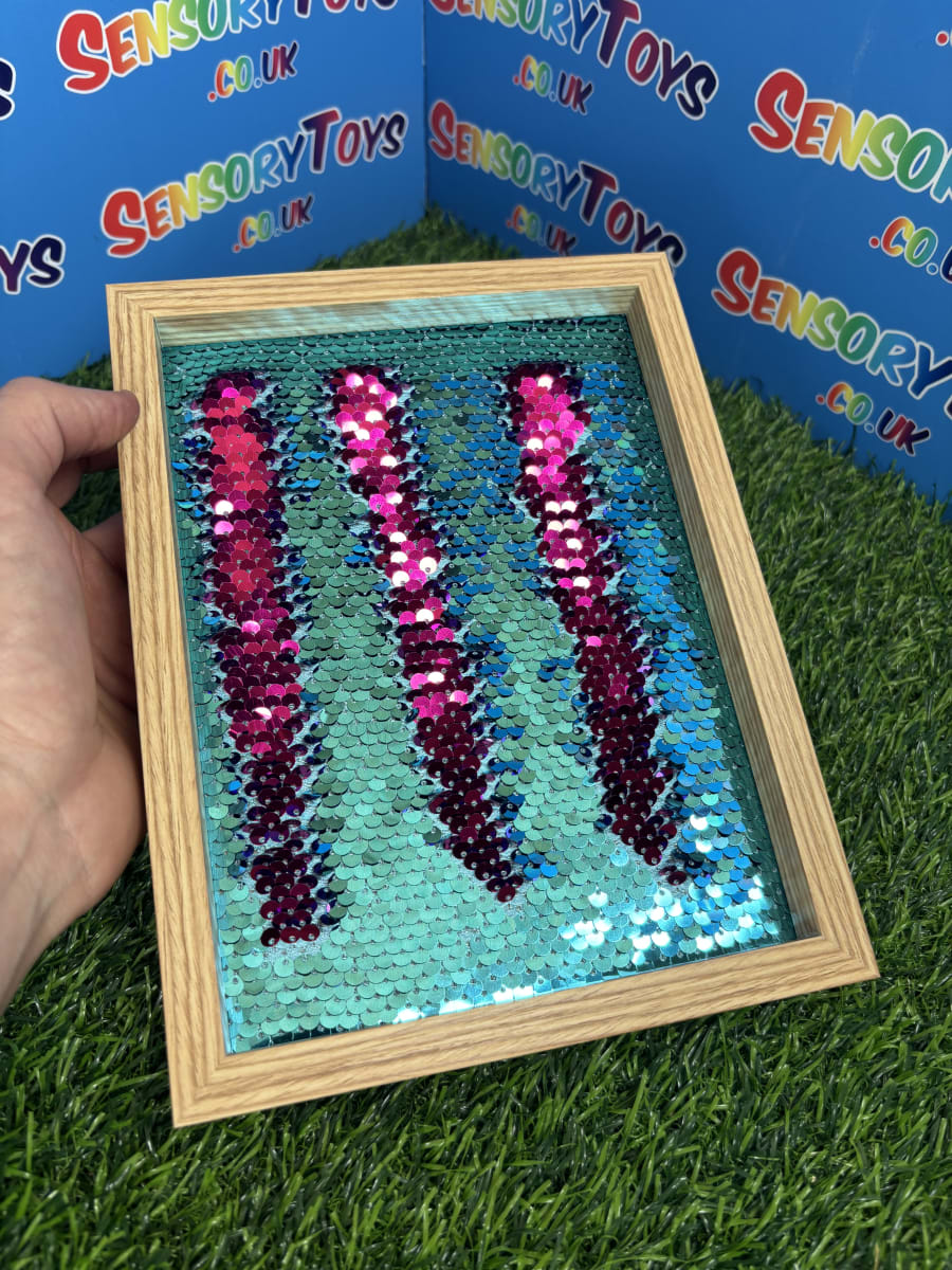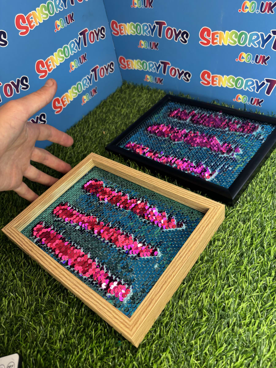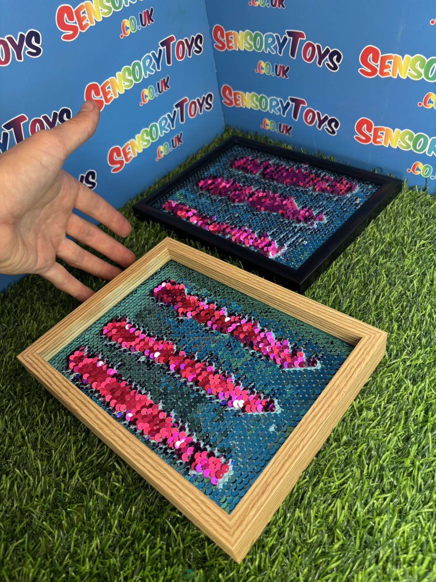 Constructed with a robust wooden frame and a securely sealed, high-quality sequin panel, this board is built to endure endless hours of fidgeting. CE and UKCA accredited for safety and quality, it’s ideal for users aged 7+ (with adult supervision), teens, and adults alike who benefit from sensory regulation or calming tactile stimulation. This is a educational learning aid, not a toy.