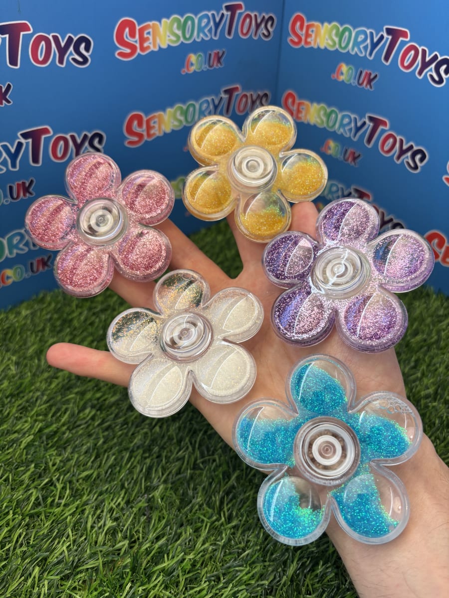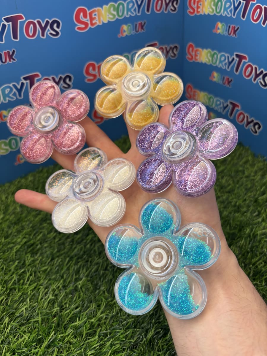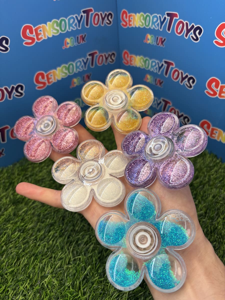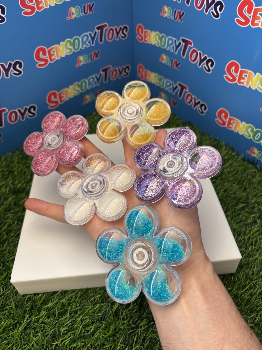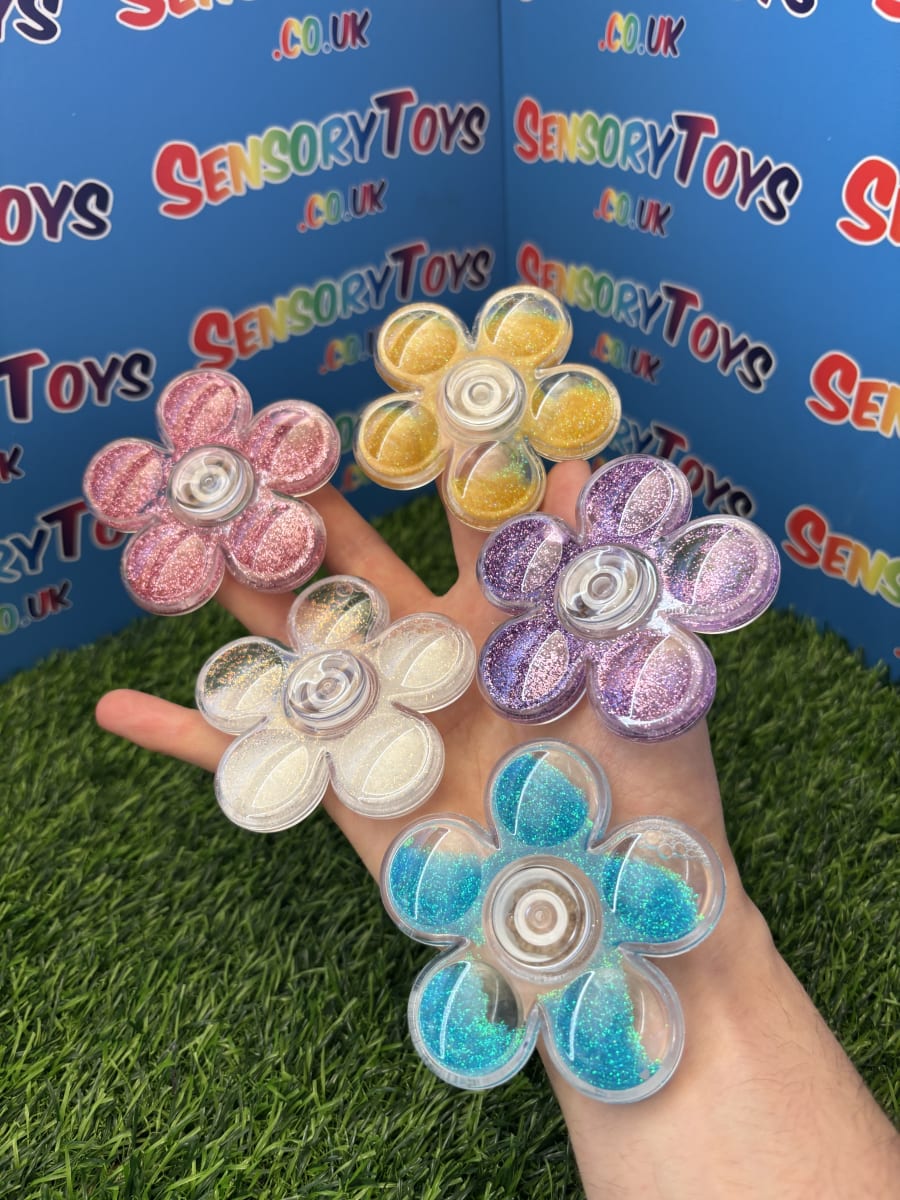 Experience double the sensory satisfaction with our Liquid Timer Fidget Spinner – the ultimate 2-in-1 fidget toy that combines smooth spinning action with mesmerizing glitter liquid flow! This unique glitter fidget spinner features a petal-shaped design filled with glittery, flowing liquid that cascades beautifully with gravity every time you spin it.