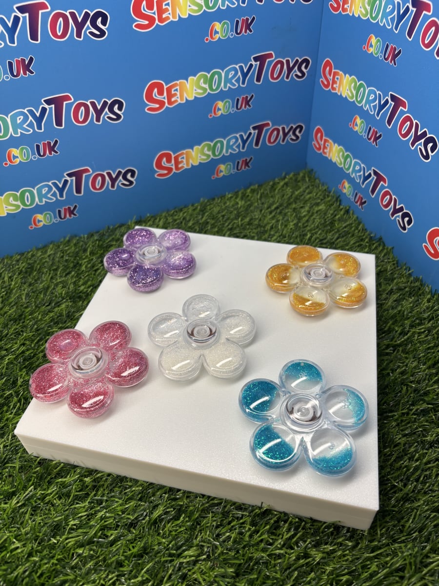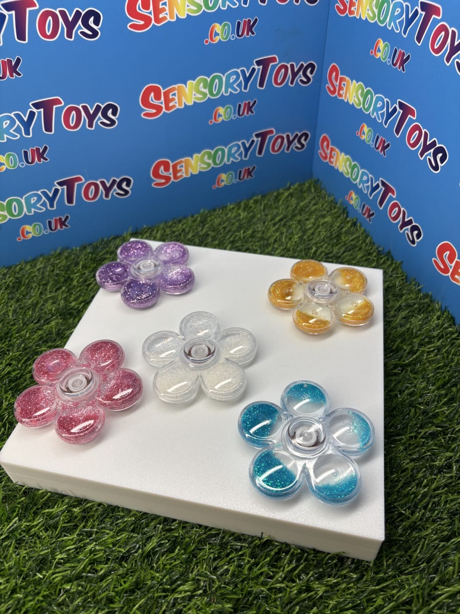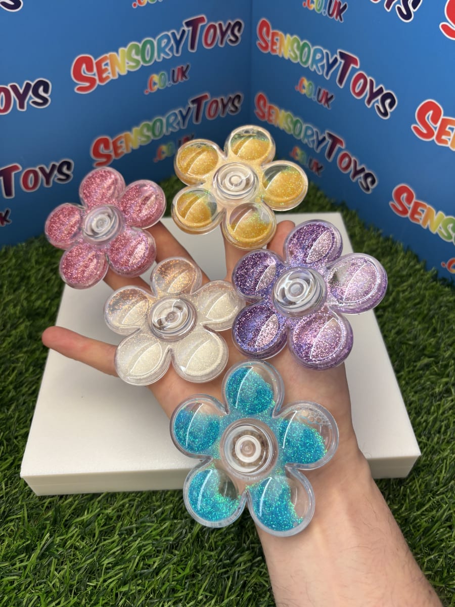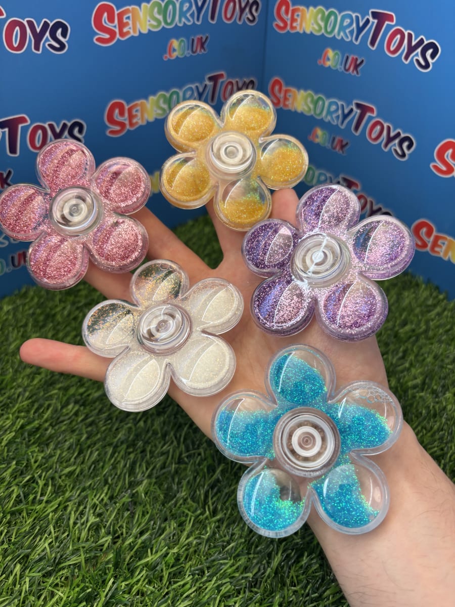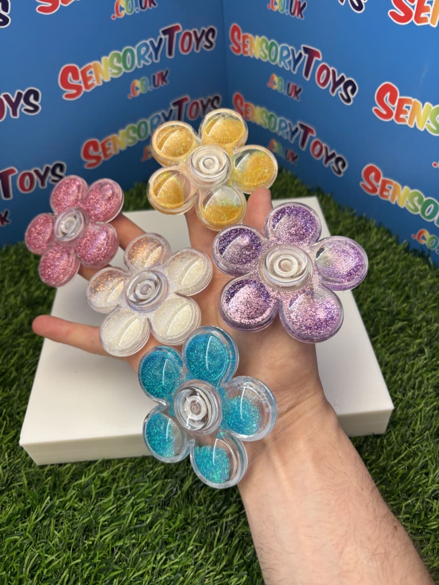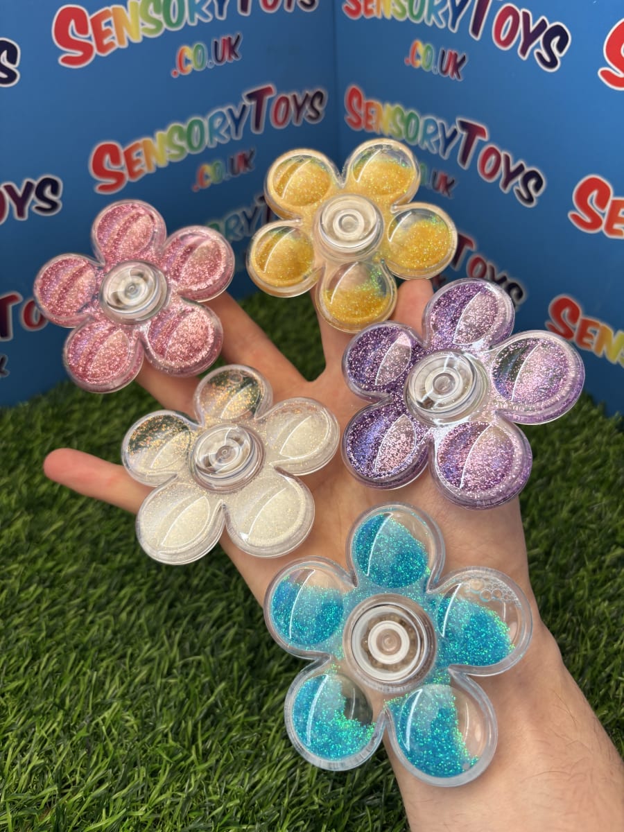 Experience double the sensory satisfaction with our Liquid Timer Fidget Spinner – the ultimate 2-in-1 fidget toy that combines smooth spinning action with mesmerizing glitter liquid flow! This unique glitter fidget spinner features a petal-shaped design filled with glittery, flowing liquid that cascades beautifully with gravity every time you spin it.