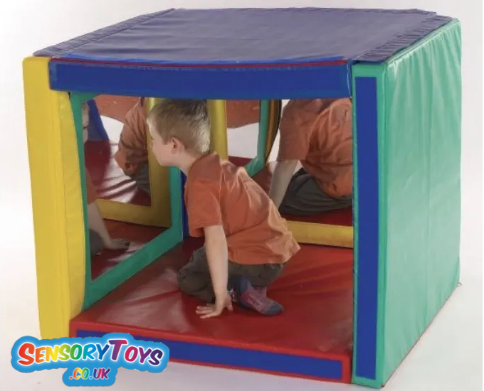 Custom built soft play mirror den! Perfect for little ones who like exploring new spaces and interacting with reflections. A mini pod that can fit up to two children at a time. A space where children can feel secure and safe. Sensory lights work brilliantly with this product. Easily assembled or packed away within five minutes. Suitable for indoor use in a home environment.