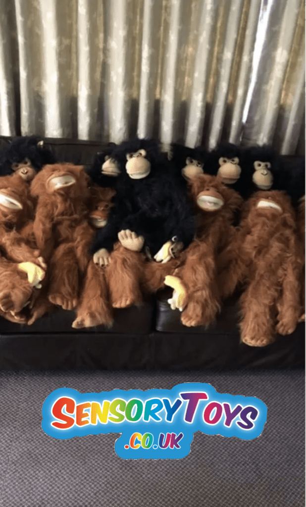 So I’ve created a completely free sensory and party extra add on! Designed to help children and young adults with addional needs. The monkeys and orangutans help reduce anxiety whilst boosting positive excitement levels! Soft and cuddly with built in squeakers, they make the perfect play/learning companion.