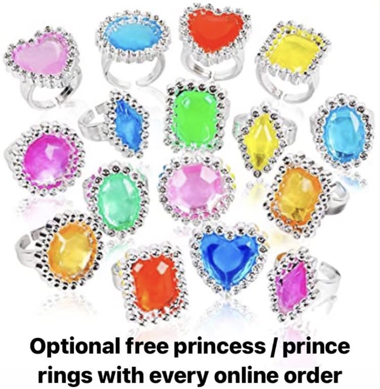 Free to add to any paying order, these free princess/Prince rings are a great little extra with any order. Children absolutely love owning products that adults have.