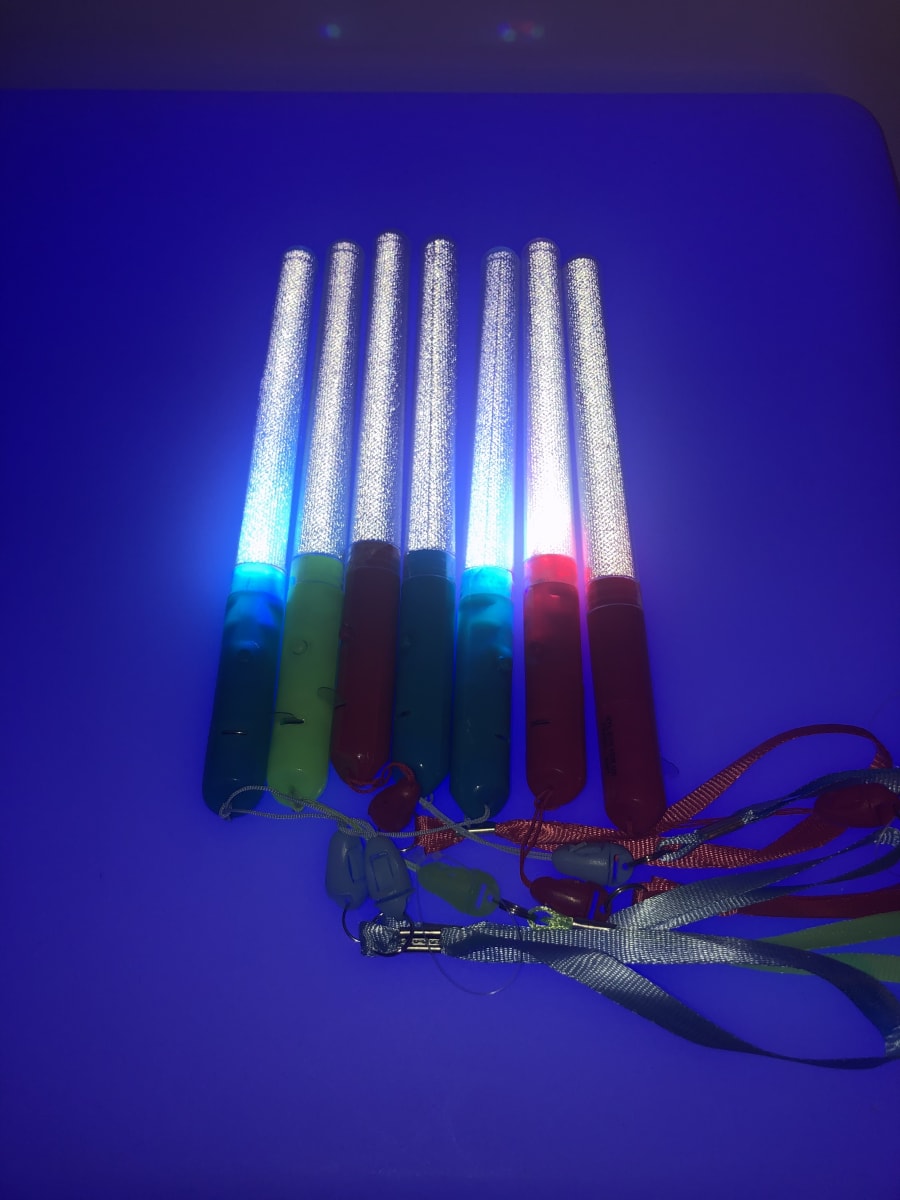 A mini Light up glow stick that can brighten any dark room! Capable of three different Glitter light flashing shows, it’s a brilliant sensory toy to entertain at night or even out and about.