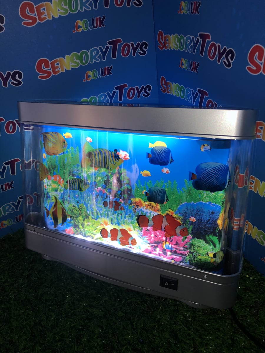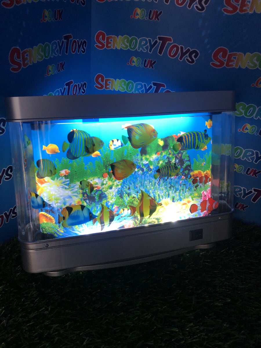 We all know how calming a fish tank can be, but this light up sensory toy is an easy plug in and go visual aid that promotes a relaxing environment and a great addition to any room. Popular for instilling a calming environment especially around the bedtime routine. Emitting a soft light to watch the fish and waves flow slowly.