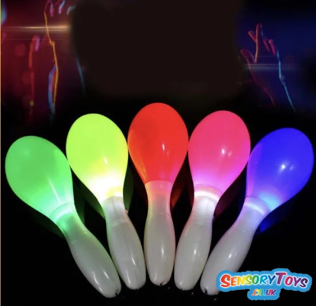 These colour changing sensory maracas are great for children as not only do they make noise, but they light up too. These maracas are a brilliant way to introduce children to two of their senses; visual and hearing. With one click of the switch the LED lights will come to life and you will be able to select from a number of colours that they can light up with. Made from durable plastic, they're fun and safe.