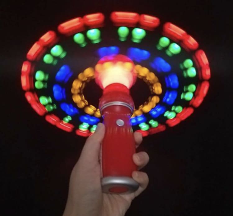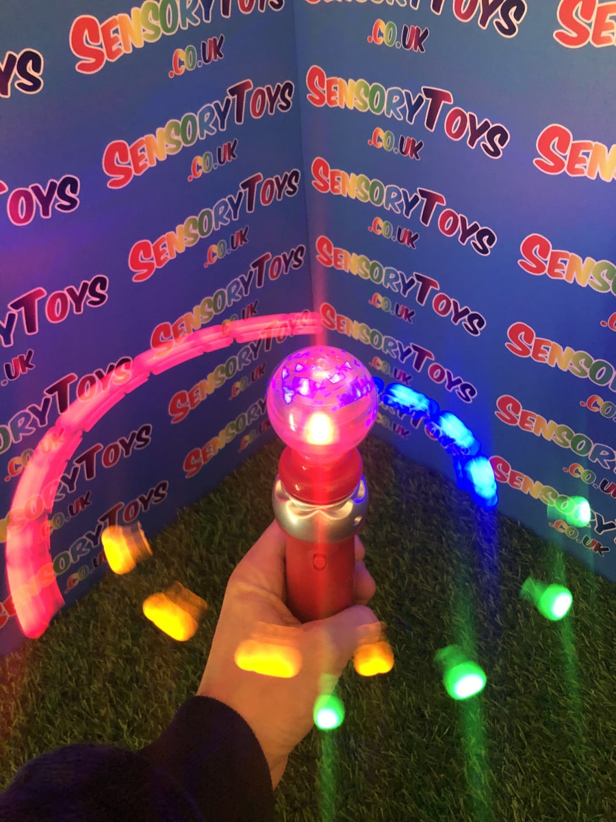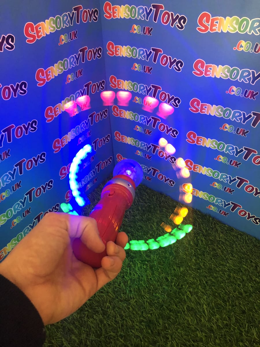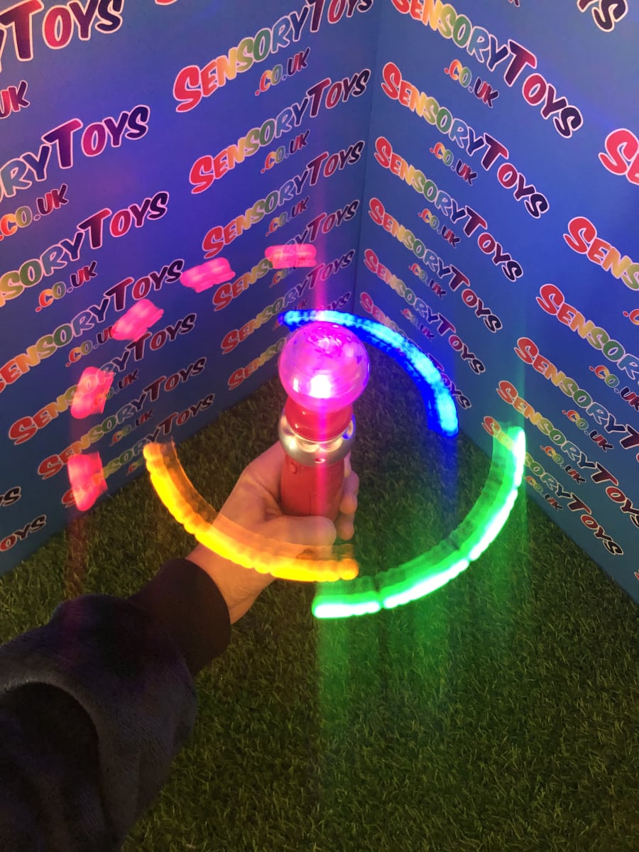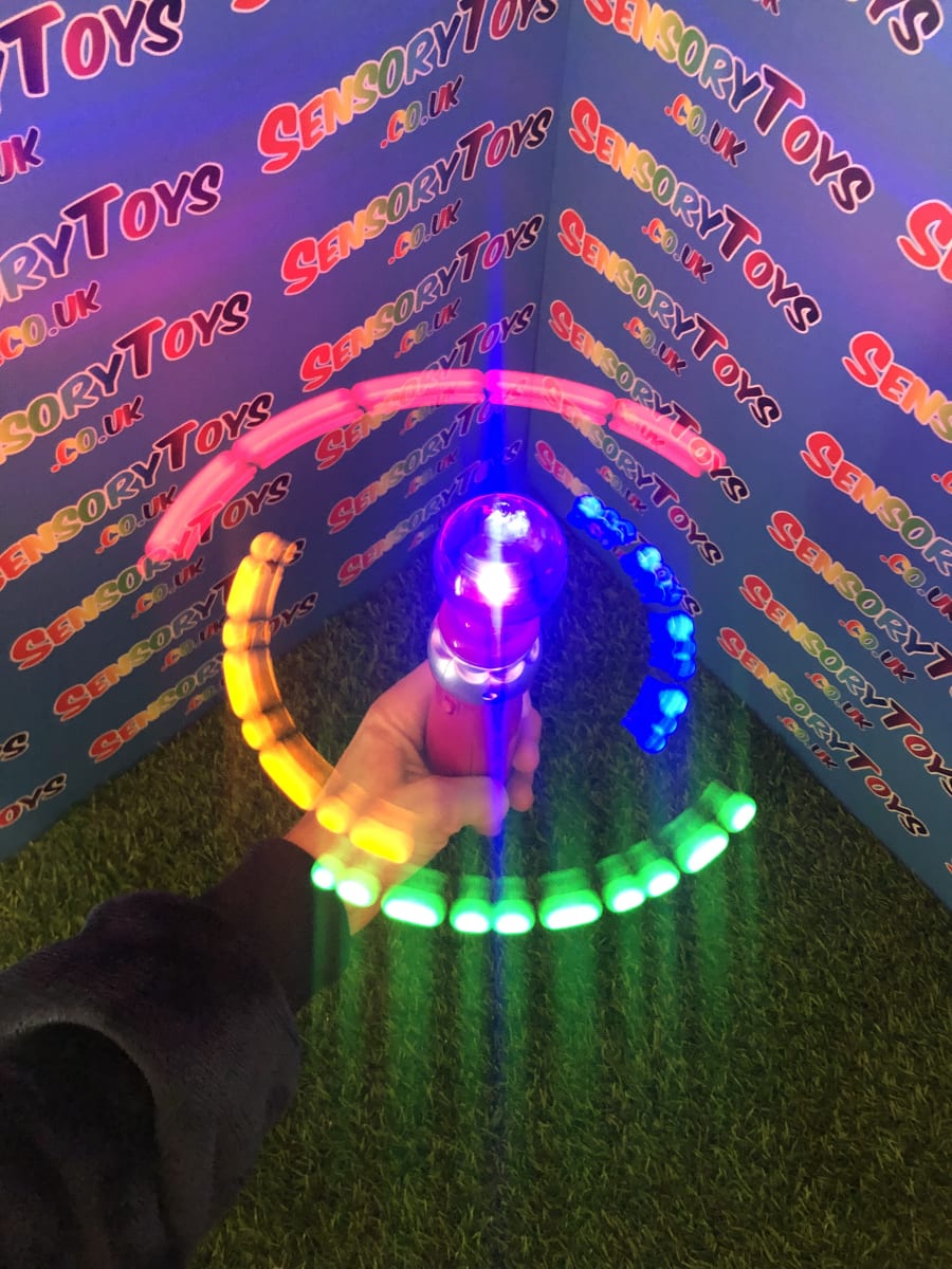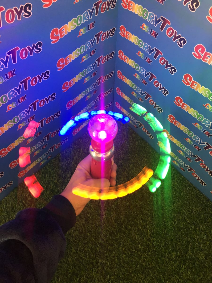 This Mega Light Up Spinner is one of the most amazing displays you will see. Four different coloured LED balls light up and spin at different speeds resulting in a brilliant blur of stunning light. This immense visual sensory experience is especially pleasing in the dark, this makes a fantastic visually stimulating sensory toy for everyone. You can now watch this light up toy below in our video! Don’t forget to check out all the photos too!