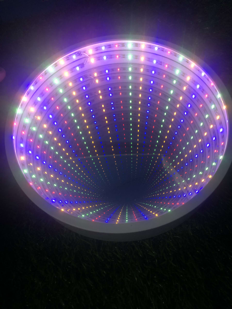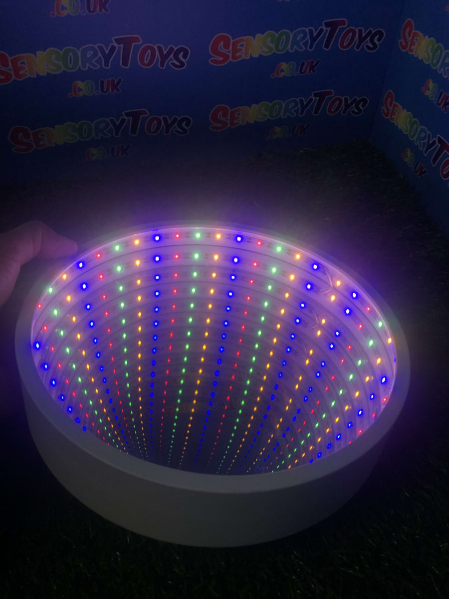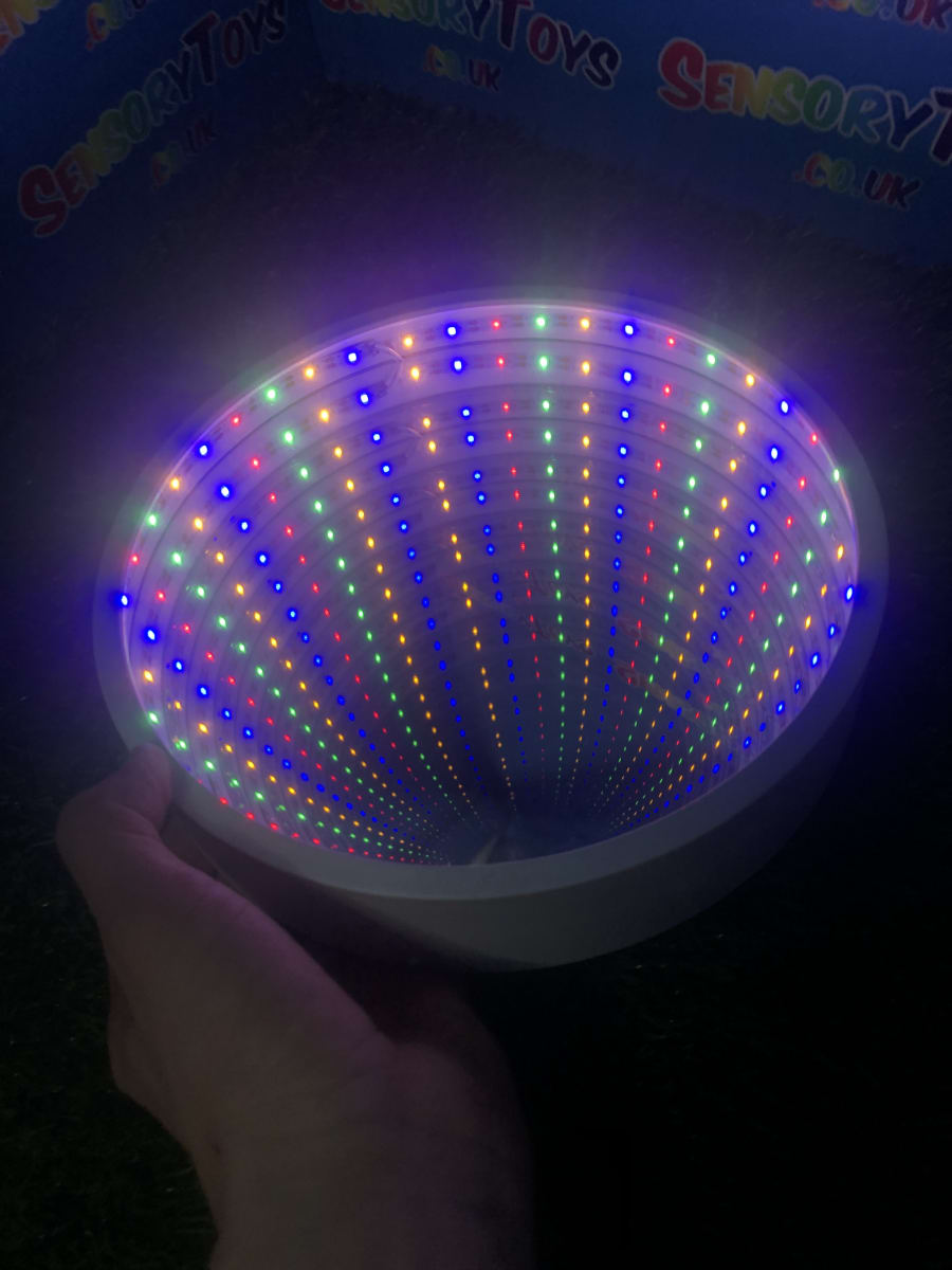 A beautiful fading visual aid that projects an illusion of an endless light tunnel. Switch on to watch the slowly fading lights change colour and provide a relaxing experience as you look into the distant lights.