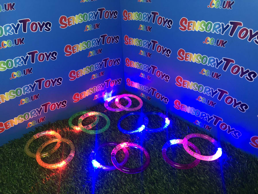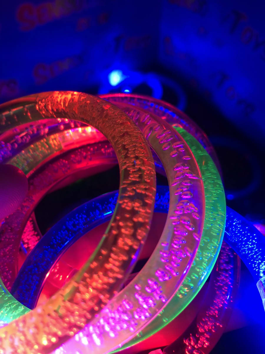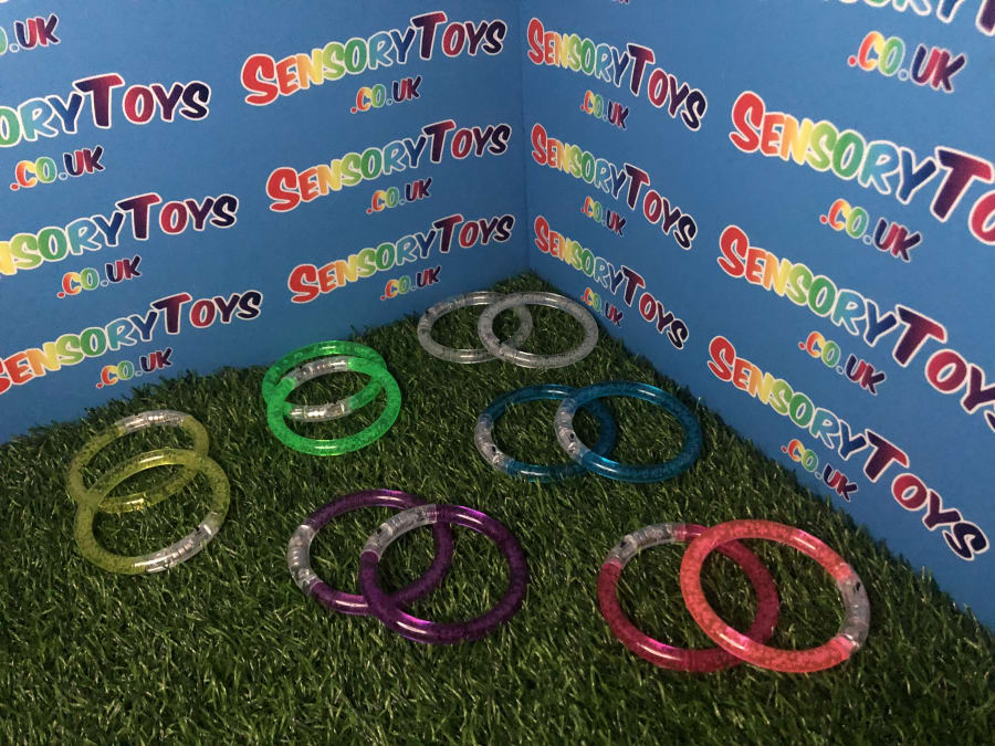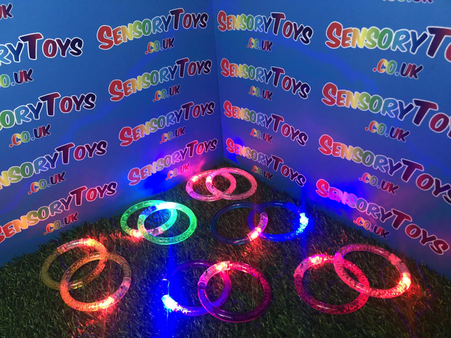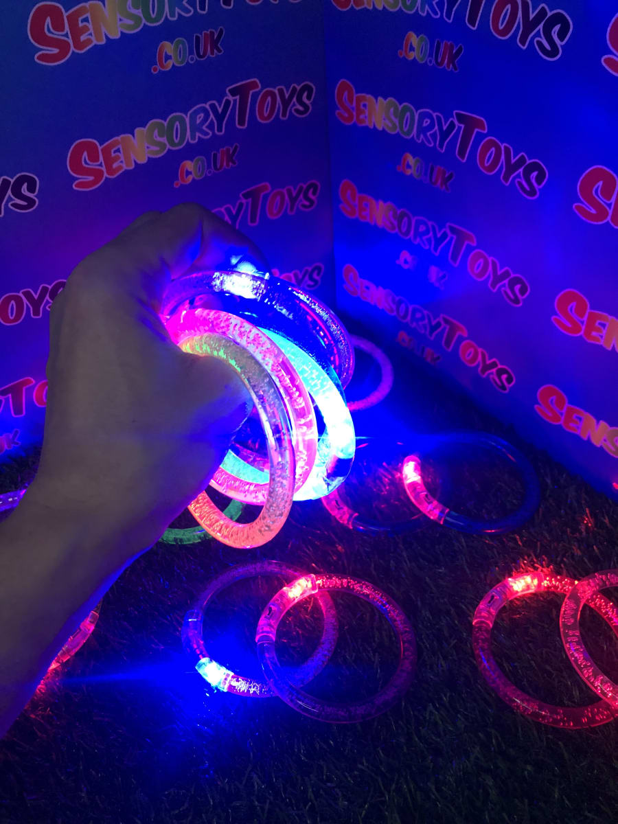 A bright sensory light up Bracelet that glows and fades on your wrist. Available in six different colours, the strong acrylic band has a bubble effect centre that can be seen in our many product photos. One size fits all, recommended for ages 6+ What’s Included? 1 x Light Up Sensory Wristband 1 x Free Batteries Included 1 x Carry Bag 1 x Free Light Up Extra