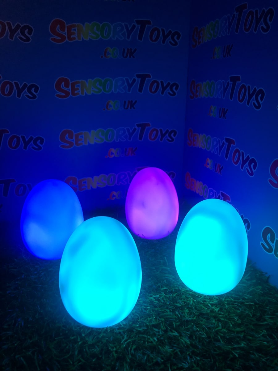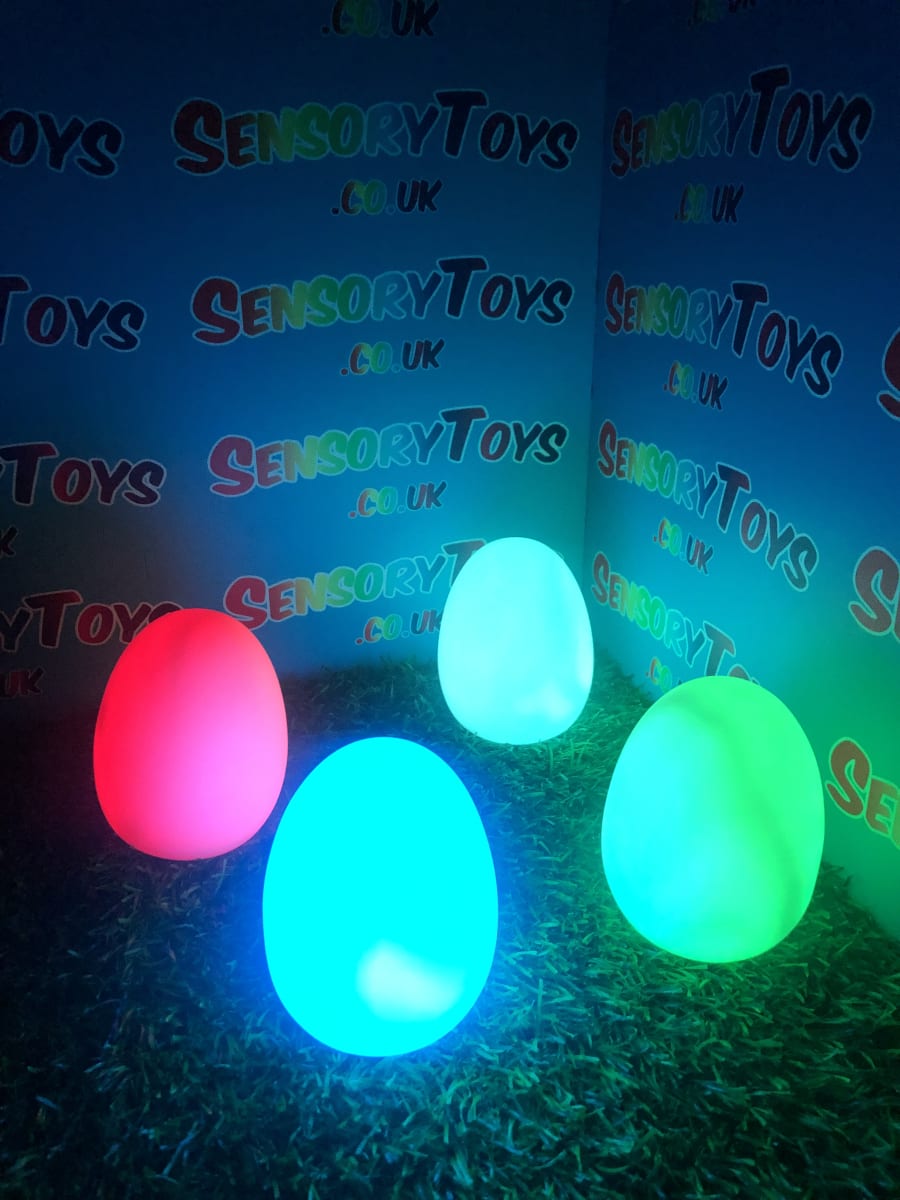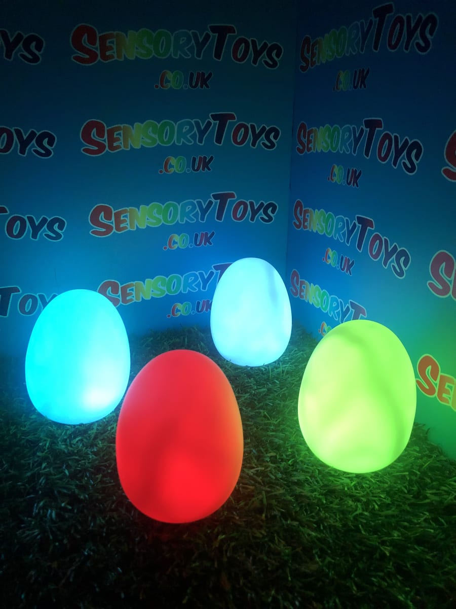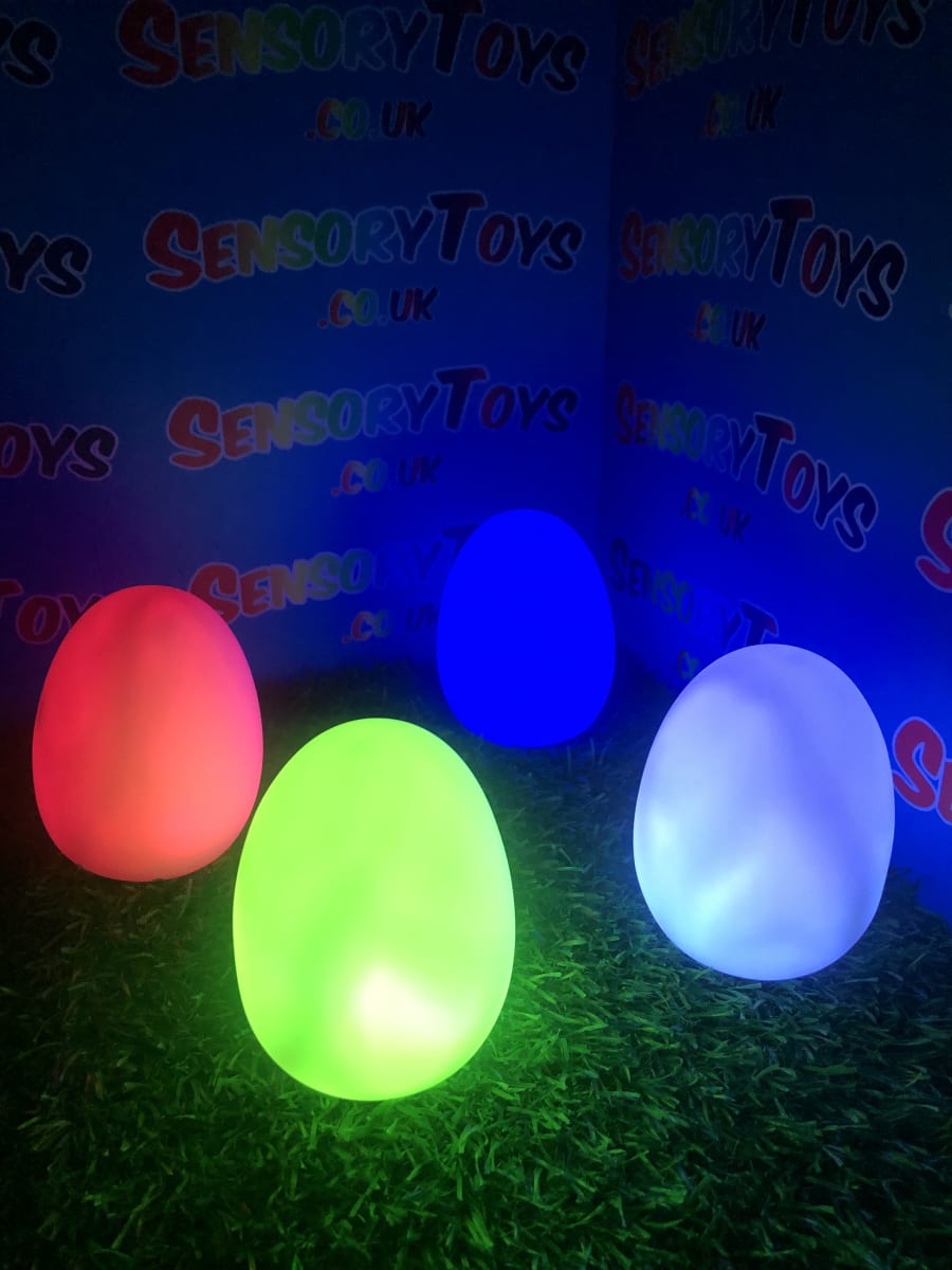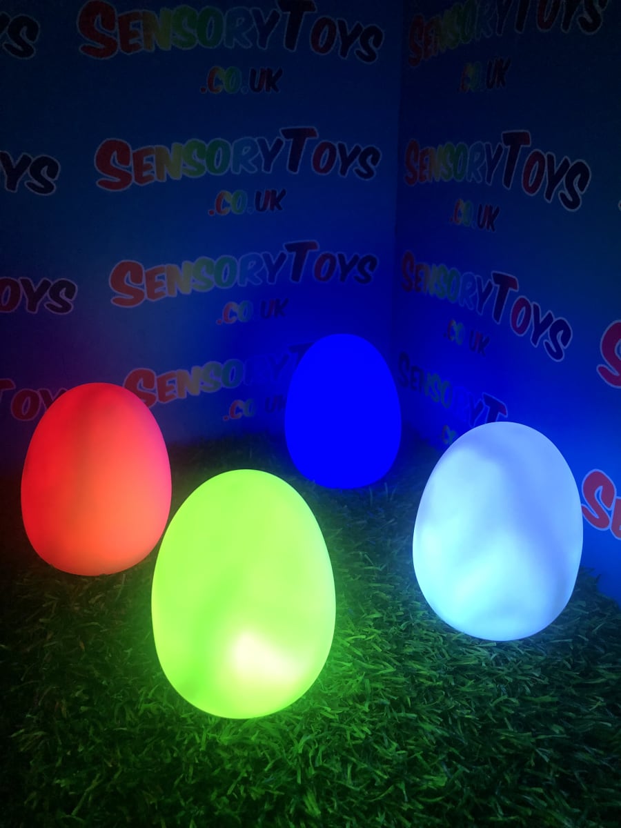 A calming sensory aid egg that fades through colours and helps promote a sense of calm. It’s an extremely robust sensory toy that is battery powered and the perfect size to fit perfectly in the palm of your hand. You can place the egg on a bedroom table to help with the positive night routine or a visual aid as you work at your desk. The Egg itself has a small flat part of the base for easy resting on a flat surface like a table or hand. It’s super bright, made from a durable acrylic and also CE UKCA approved. This egg-shaped wonder fades between bright colours to help users relax and regulate their emotions. It is one of my personal favourite light therapy tools for helping lowering stress and anxiety levels of children and adults. Batteries are included with every sale, so just pull the safety tab and your new sensory egg is ready to use! And with a height of approximately 14cm and a width of 8cm, it’s the perfect size for all your sensory needs. But don’t take our word for it, make sure to check out all the photos and studio video before adding it to your basket. Get cracking and order yours today!