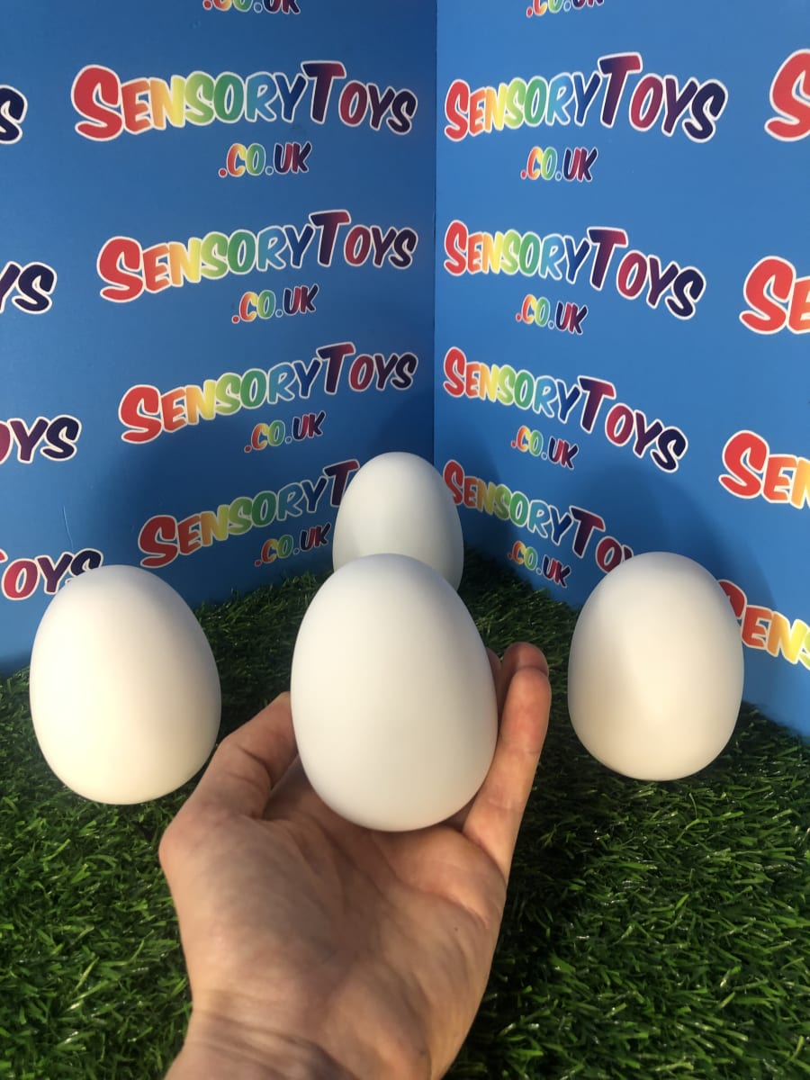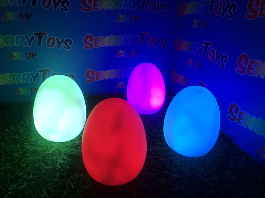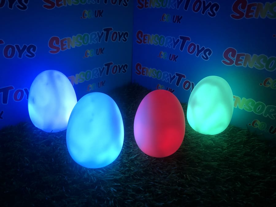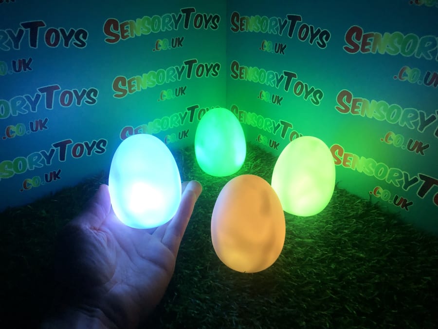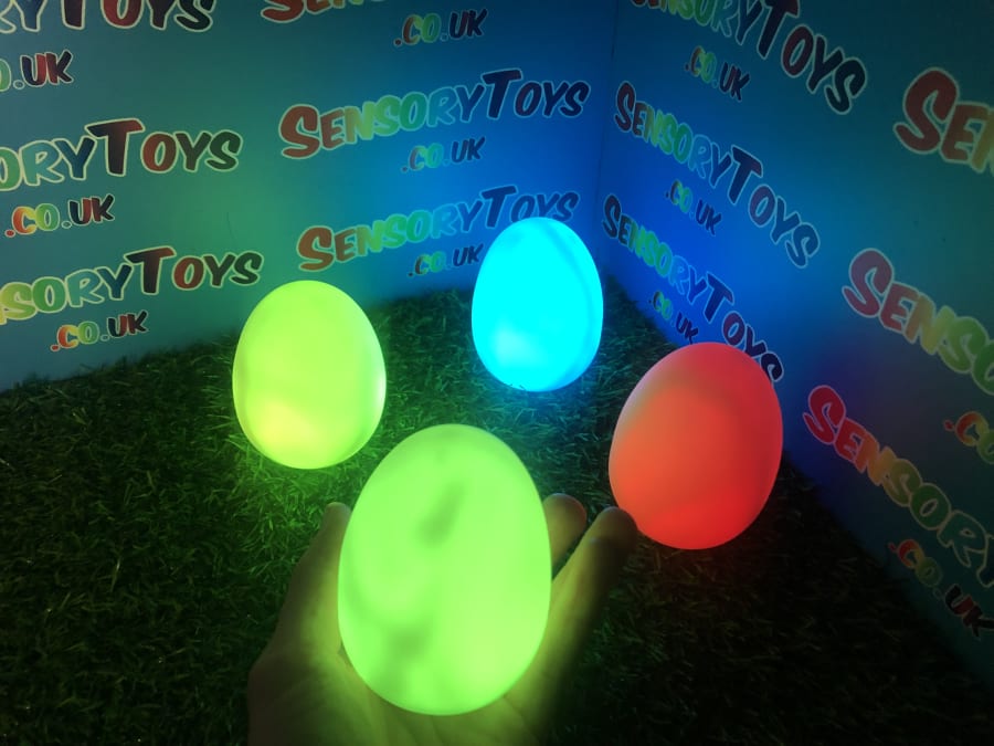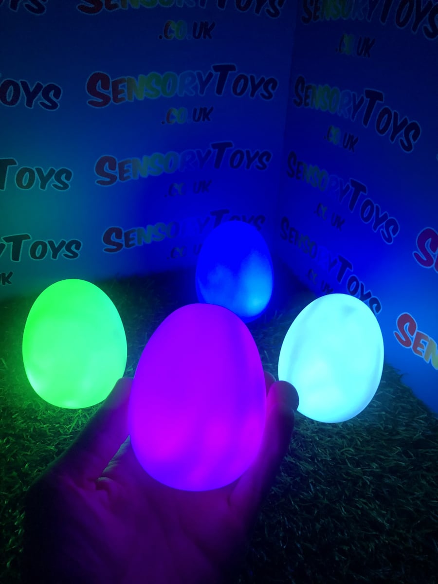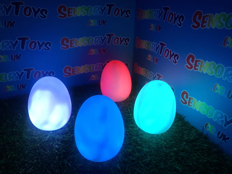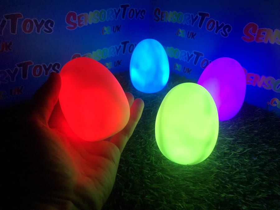 A calming sensory aid egg that fades through colours and helps promote a sense of calm. It’s an extremely robust sensory toy that is battery powered and the perfect size to fit perfectly in the palm of your hand. You can place the egg on a bedroom table to help with the positive night routine or a visual aid as you work at your desk. The Egg itself has a small flat part of the base for easy resting on a flat surface like a table or hand. It’s super bright, made from a durable acrylic and also CE UKCA approved. This egg-shaped wonder fades between bright colours to help users relax and regulate their emotions. It is one of my personal favourite light therapy tools for helping lowering stress and anxiety levels of children and adults. Batteries are included with every sale, so just pull the safety tab and your new sensory egg is ready to use! And with a height of approximately 14cm and a width of 8cm, it’s the perfect size for all your sensory needs. But don’t take our word for it, make sure to check out all the photos and studio video before adding it to your basket. Get cracking and order yours today!