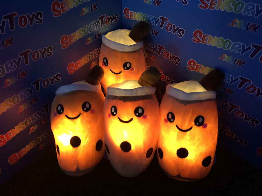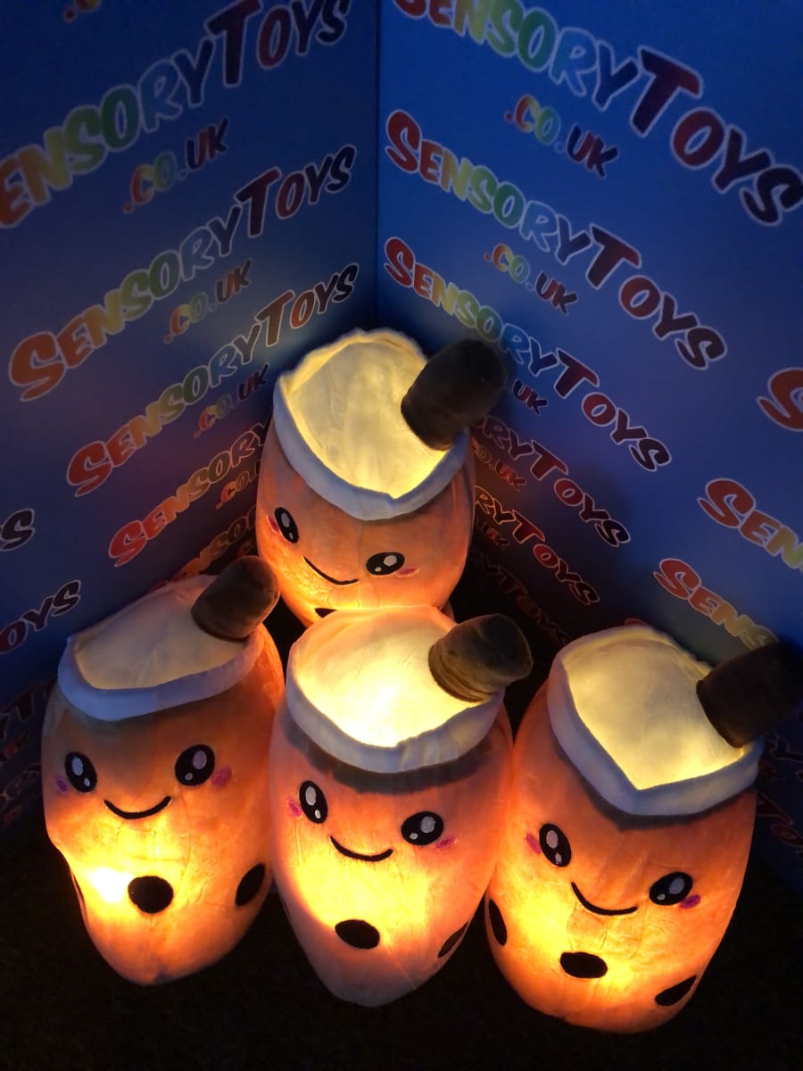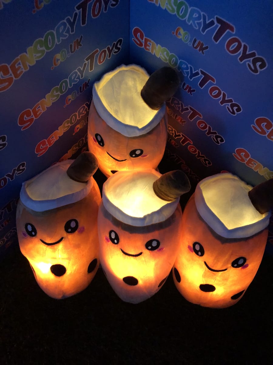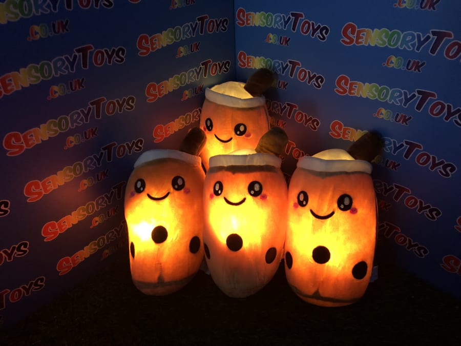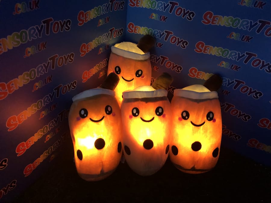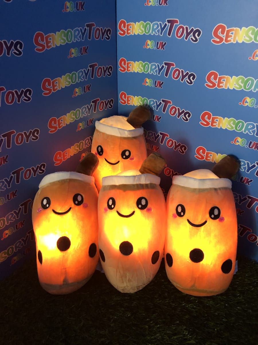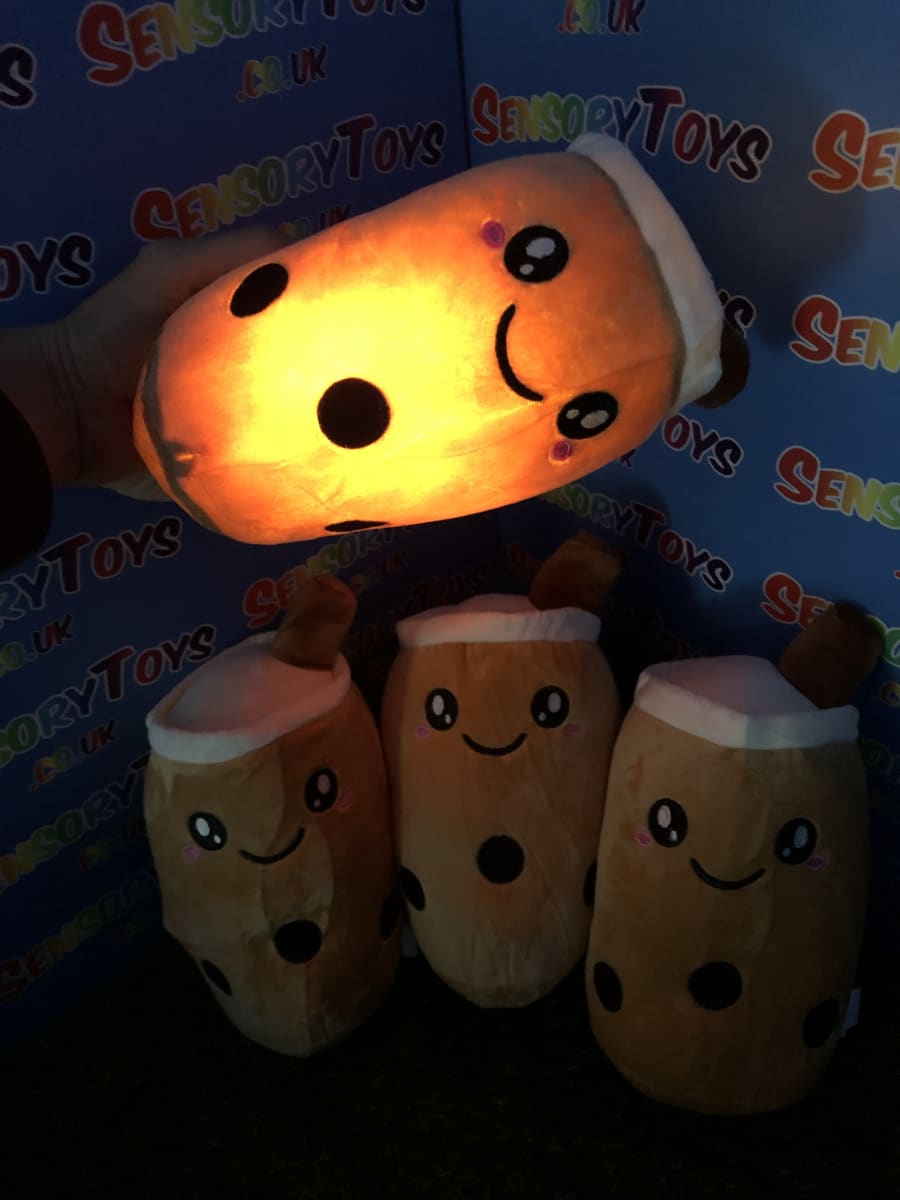 One of the only plushie light up cuddle toys in the sensory toy world! Super cute boba tea theme at 24cm, perfect for cuddling and squeezing. Batteries can be removed inside by an adult, we supply three brand new AAA batteries with your order so it’s ready to go the moment your new light up plushie arrives.