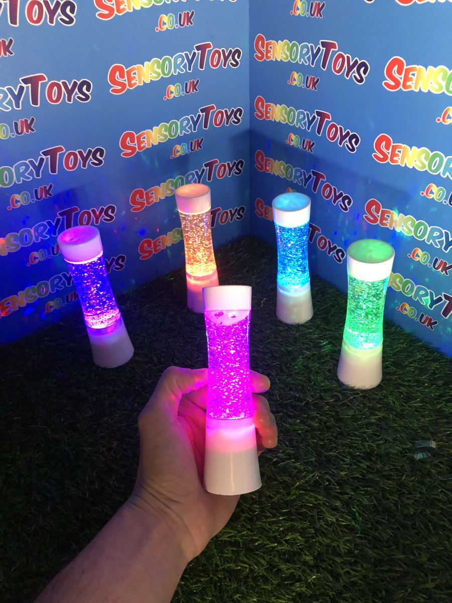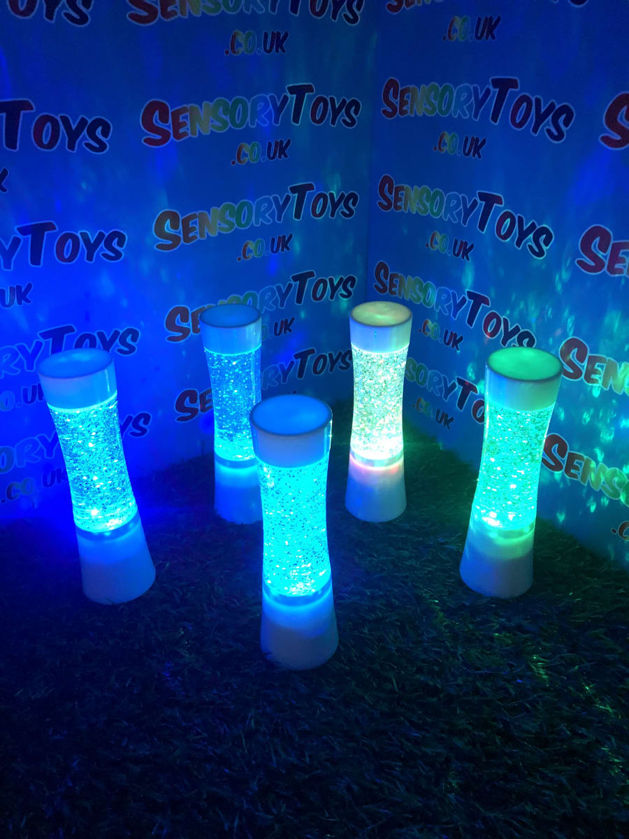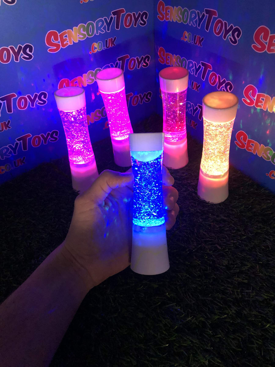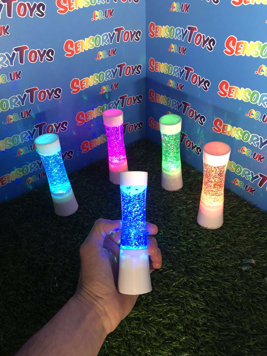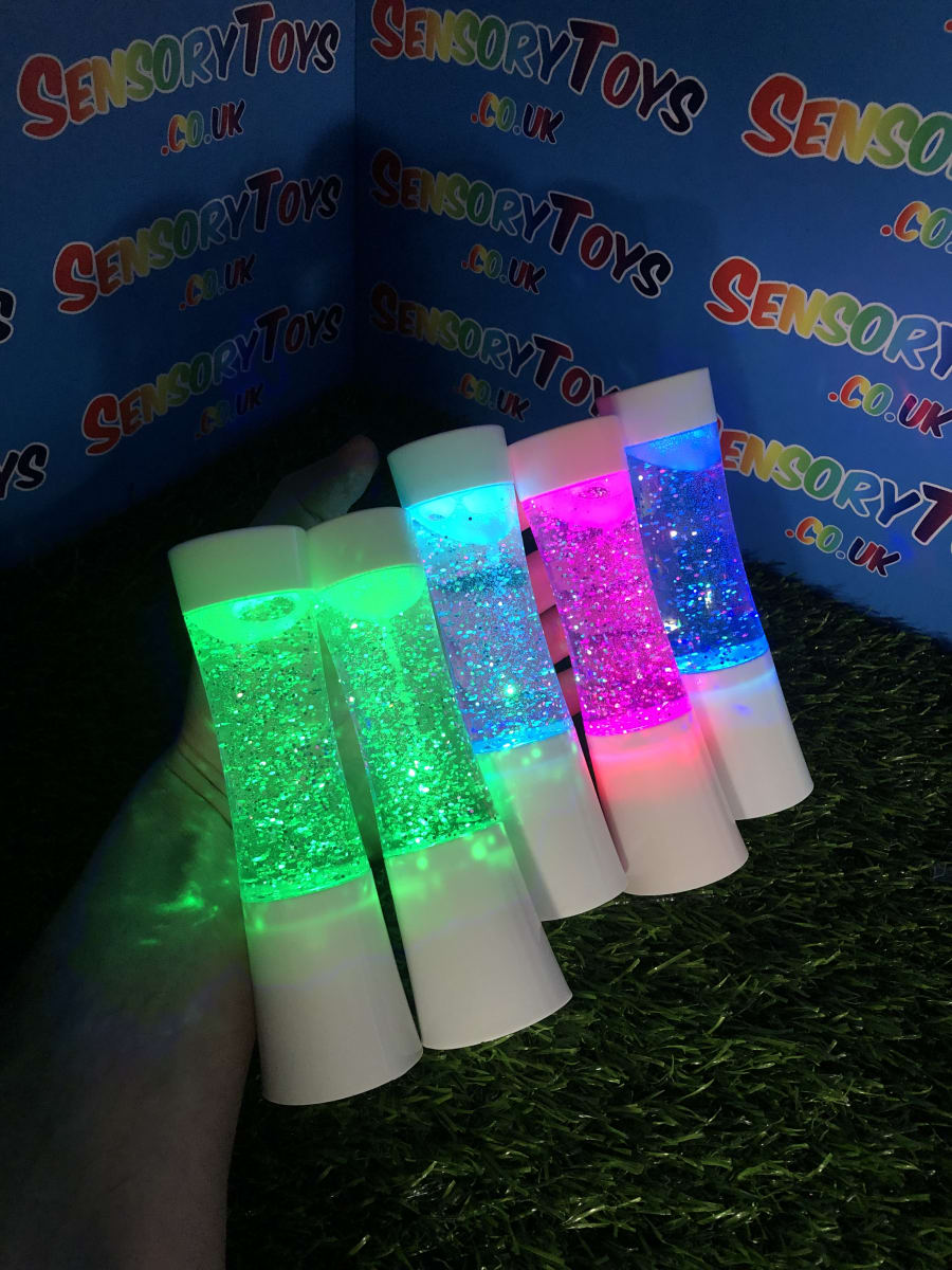 A beautiful handheld light up glitter lamp that’s perfect for on the go fun! Battery powered so no wires, simply shake the lamp to create a colour changing light the reflects on the glitter inside. This creates a beautiful projection too on any nearby walls. Sensory lights are a fantastic educational learning aid, which is also proven to help lower stress and anxiety. Children and adults can retain and learn information more effectively when in a calming, play based environment. You can see this best below in our sensory studio video below!