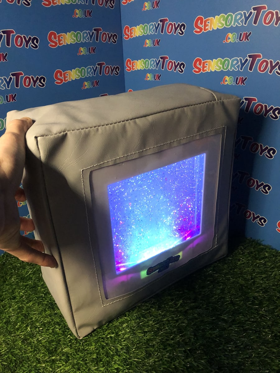 A one of a kind visual sensory resource that’ll have you in awe! A soft play, portable sensory bubble wall that’s calming to watch! The water and bubbling glitter swirl in the centre fades through calming colours! The jets inside swirl like a bubble wall and create a sparkling glitter effect when reflecting light. Just peek at our Etsy video for the best insight into exactly how this product works, because you won’t find it anywhere else!