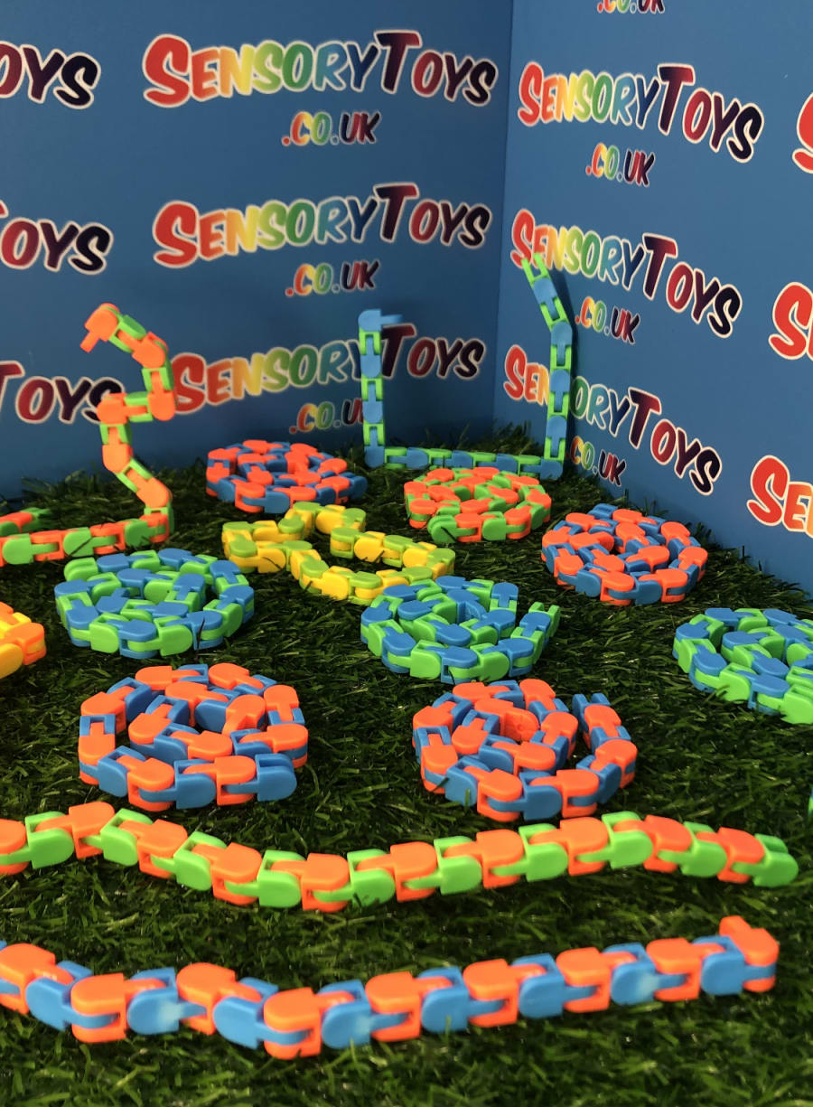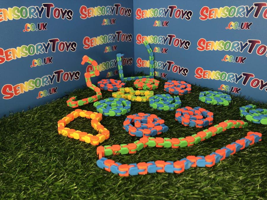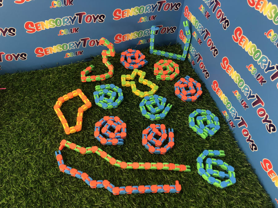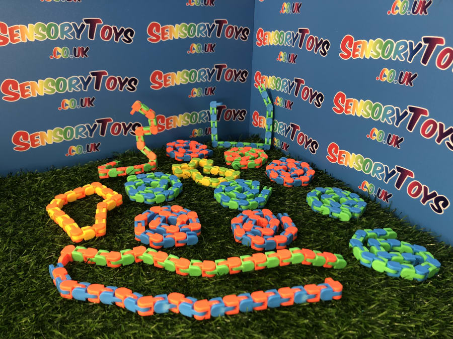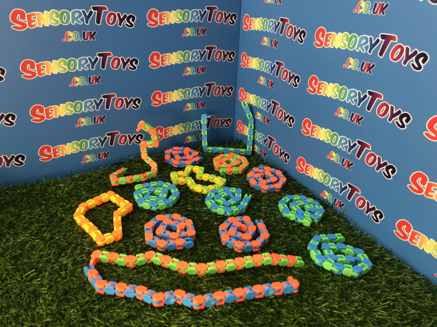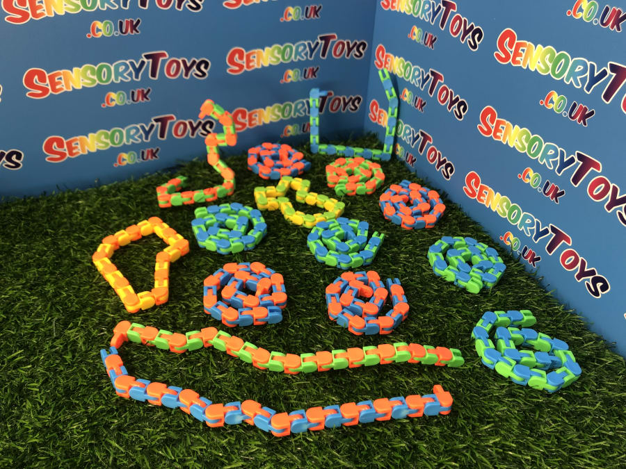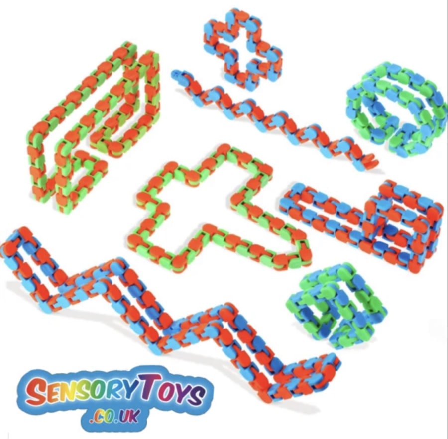 Wacky Tracks are one of the most searched for sensory toys in the United Kingdom. These snake like toys can be increased or decreased with a few satisfying clicks. This fidget product can pivot and lock into five positions, as well as create a wide array of shapes, numbers and letters. The product has 24 linkable pieces and is suitable for children 5 years and up.