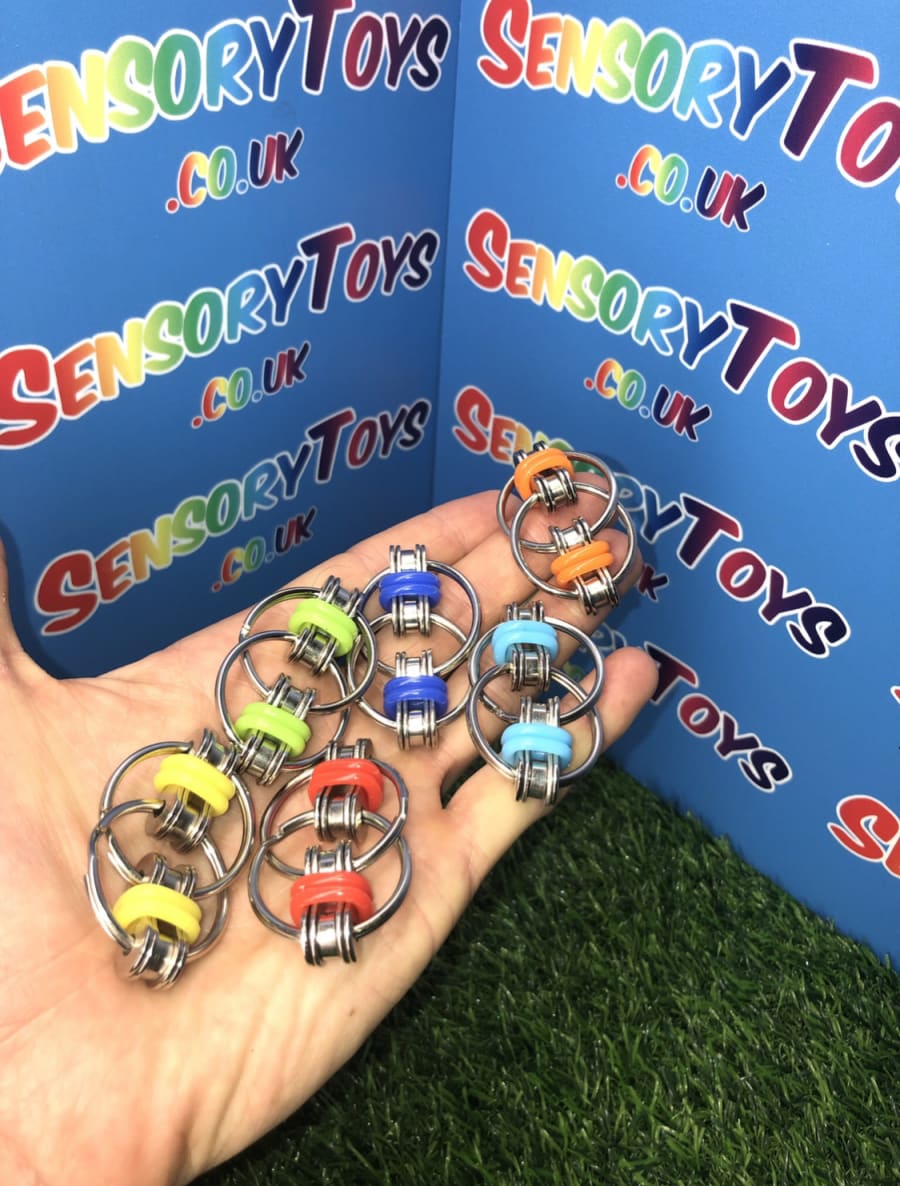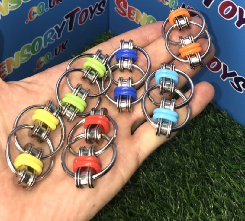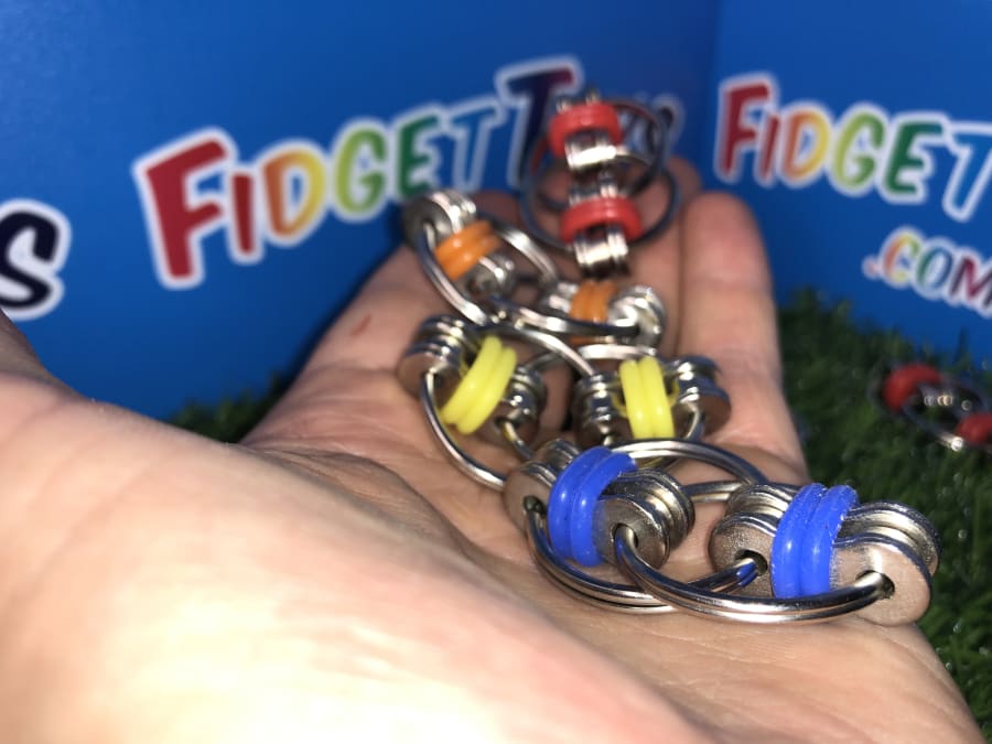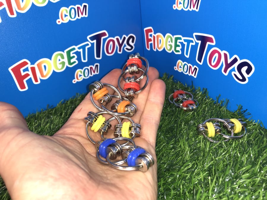 A flippy fidget that’s great for fidget toy fans. A perfect addition to any fidget toy collection, keychain or school bag. This bicycle chain mechanism allows you to therapeutically twist and turn the device in a smooth manner. Fidgety hands? Add to basket, problem solved! You can see our different coloured range of chain fidgets in our video below.