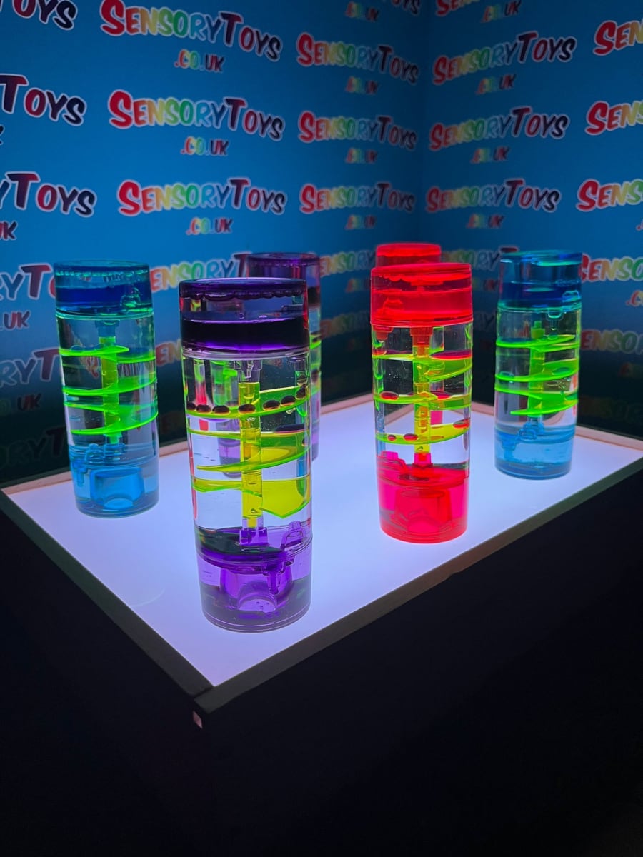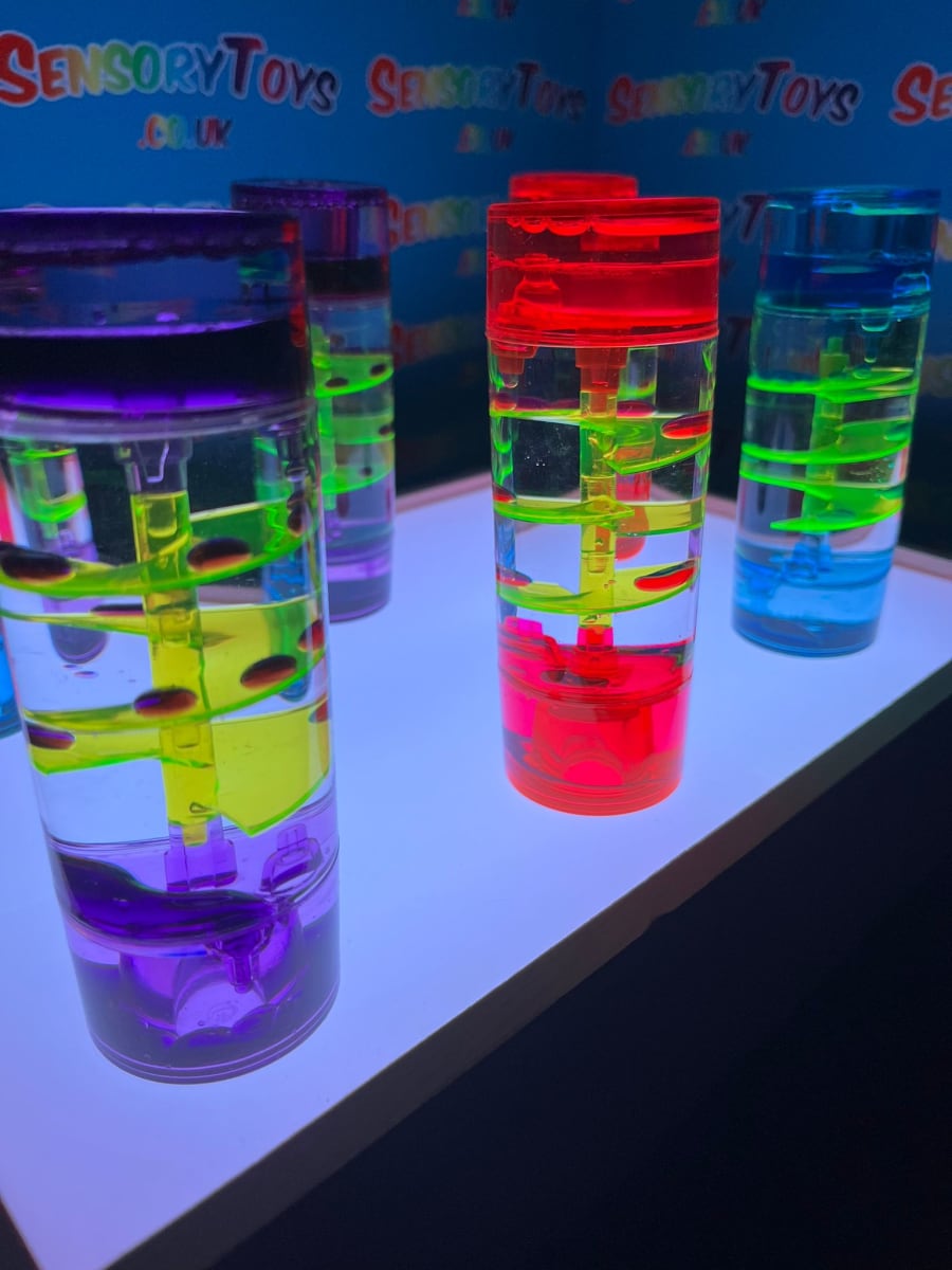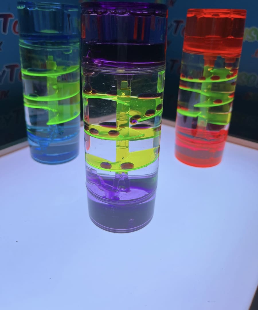 These sensory liquid timers use the flow of coloured oil and water to slowly descend through the hourglass in a calming manner. Ideal for stimulating discussion, aid concentration or for providing a visual sensory experience.