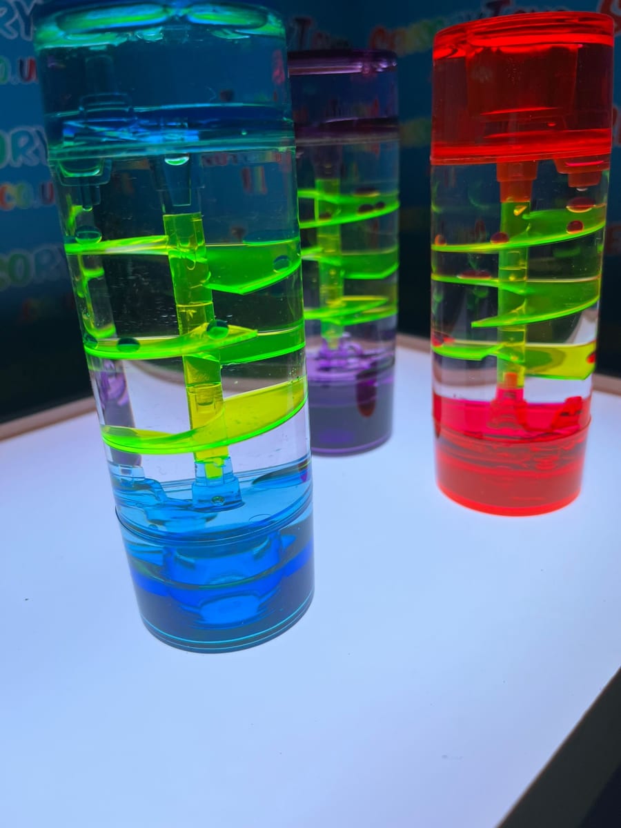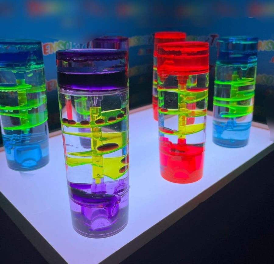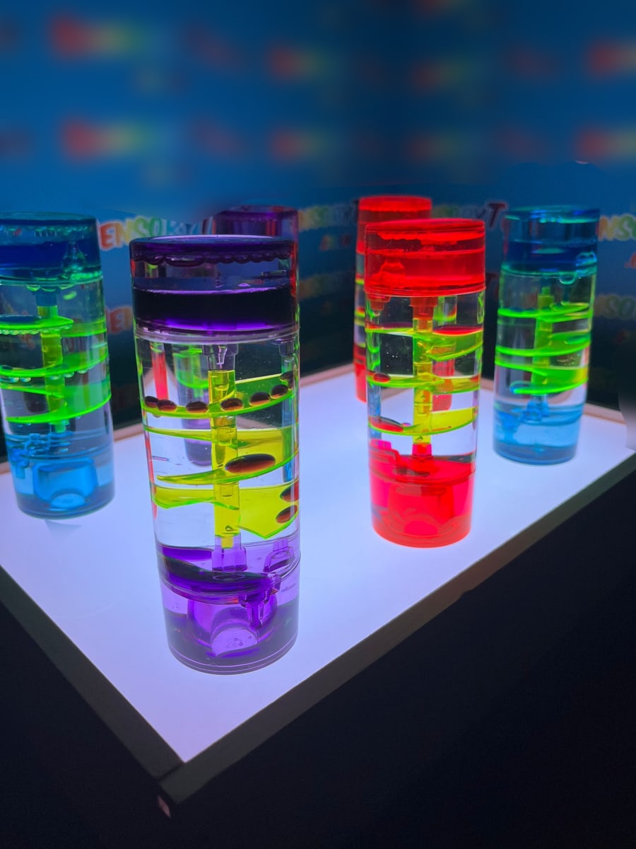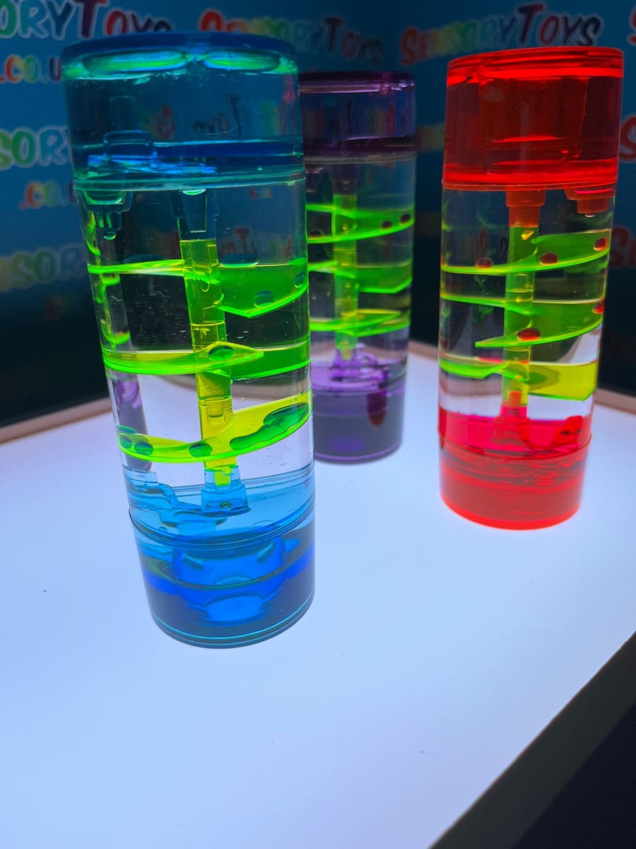 These sensory liquid timers use the flow of coloured oil and water to slowly descend through the hourglass in a calming manner. Ideal for stimulating discussion, aid concentration or for providing a visual sensory experience.
