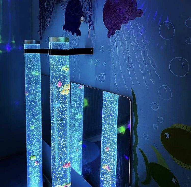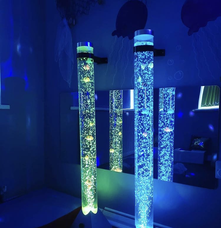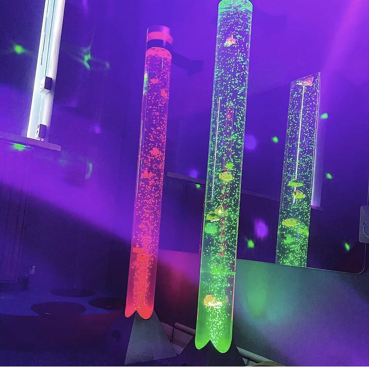 Our biggest bubble tubes stand at 1.25M / 125 centimetres tall and illuminate many different primary colours. You can watch the bubbles slowly rise to the top as the tube as the lights fade colours. These sensory bubble tubes are a lot bigger than many other sensory suppliers, with most standing at under 100cm in height. A highly popular sensory product choice for children’s bedrooms that helps to promote a calm sensory environment. You can watch our bubble tube demonstration video below for more of an insight into how this product works.