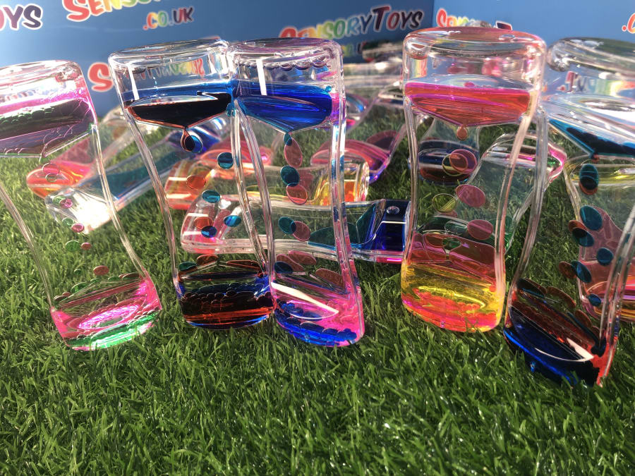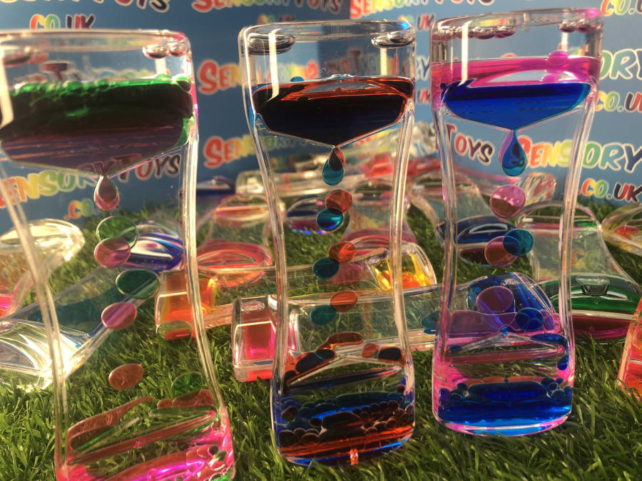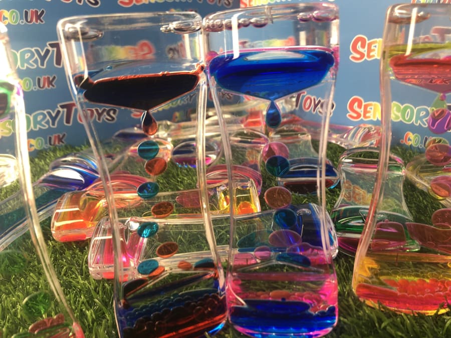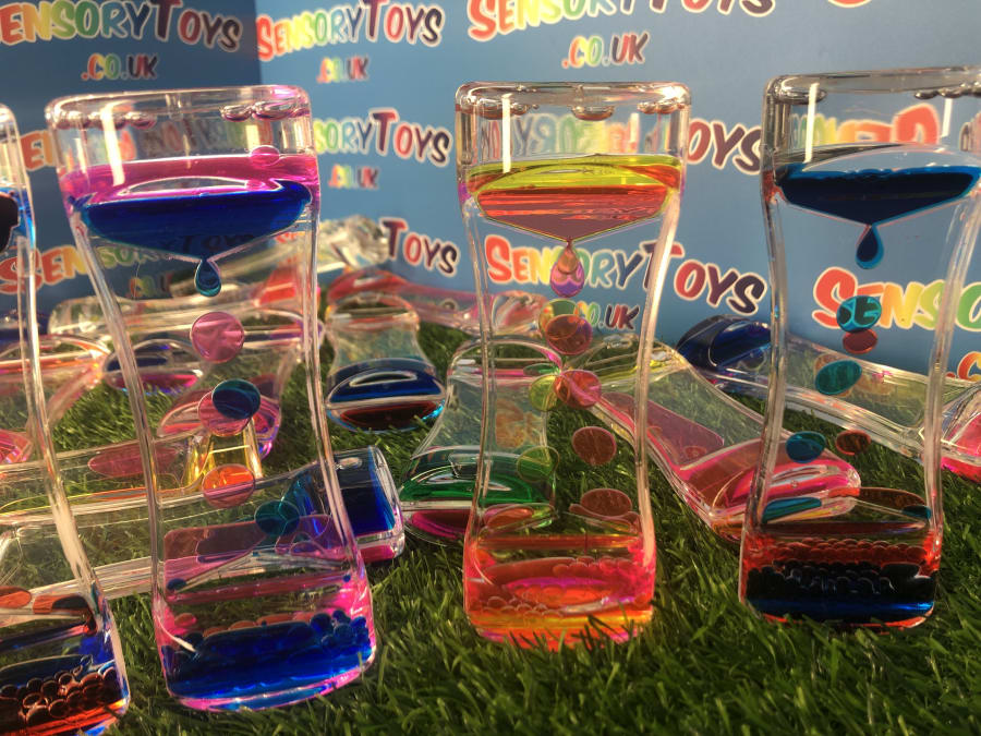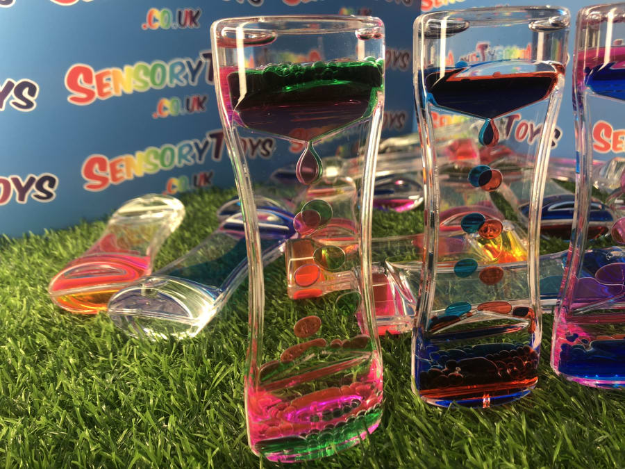 A singular flowing visual timer that includes two brightly coloured liquids! Simply turn the timer and watch as the colourful oils inside create a beautiful visual display. A retro and long standing favourite visual toy that helps promote a more calming learning atmosphere. Popular in school learning settings, at home or in an add on sensory box within a professional sensory room.