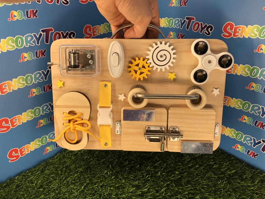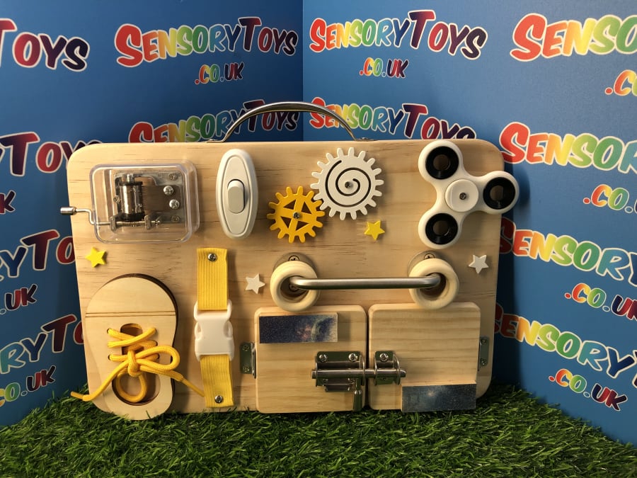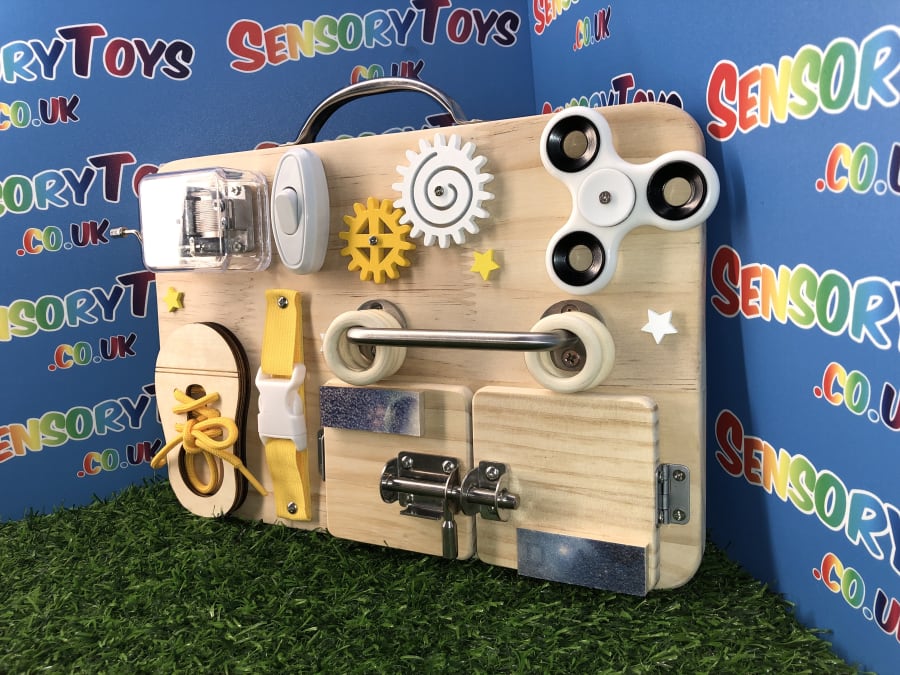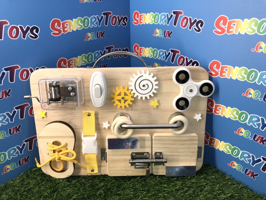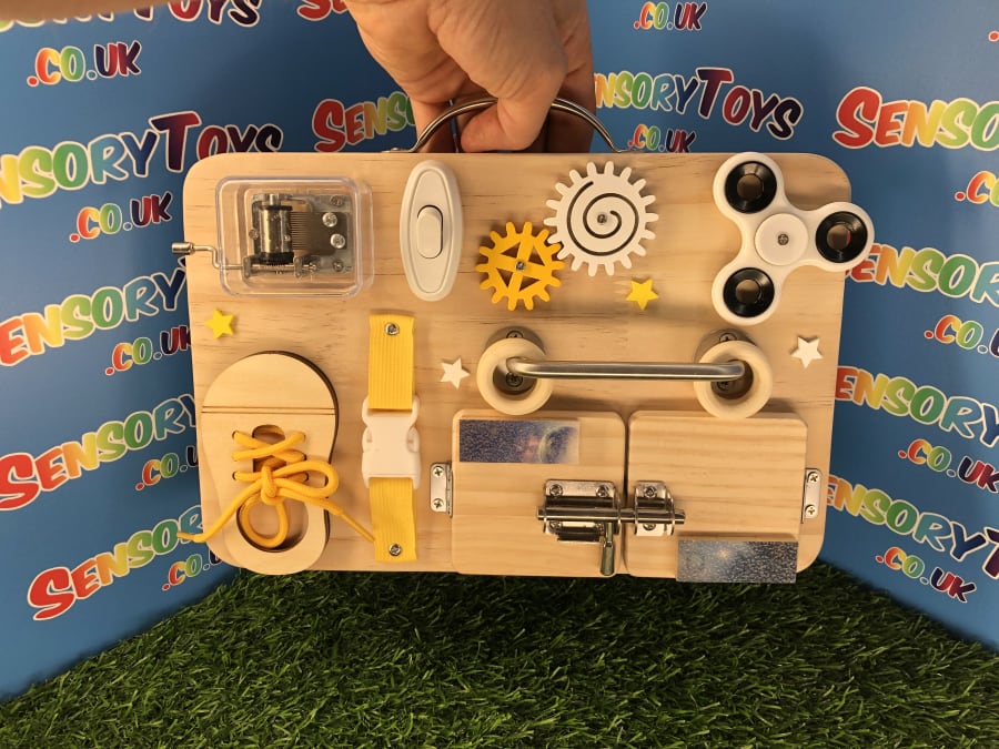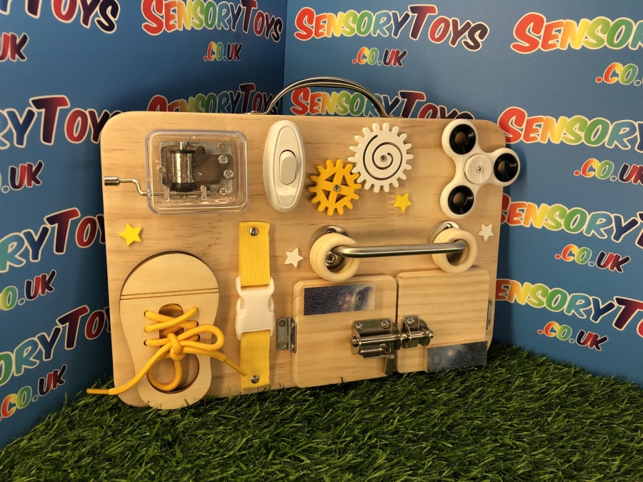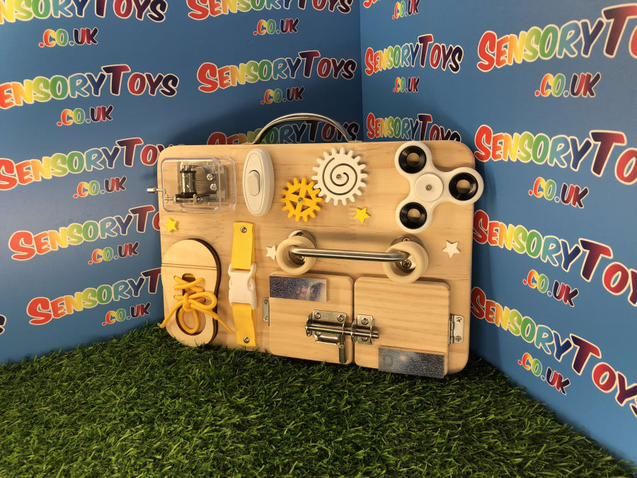Introducing our exquisite handmade sensory activity board, designed to inspire learning and exploration through play! Whether you prefer using it on your lap, table, or mounted on a wall, this versatile product is perfect for engaging young minds.