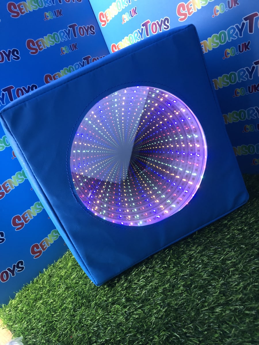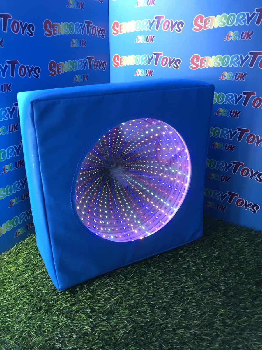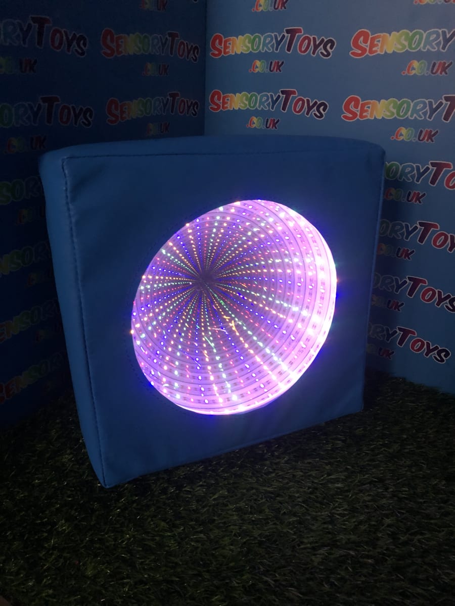 Dive into a world of mesmerizing light up sensory resources with our exclusive Soft Play Sensory Mirror! A bespoke creation designed for endless sensory delight. This large, padded square beckons with its vibrant infinity light mirror nestled at the center, casting a spellbinding tunnel illusion that's both calming and enchanting. It's not just a soft play square; it's a journey into the infinite, providing a soothing visual escape.