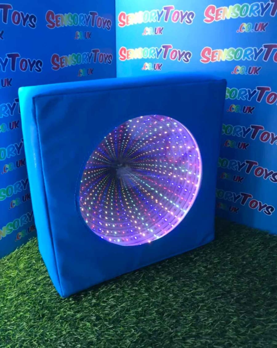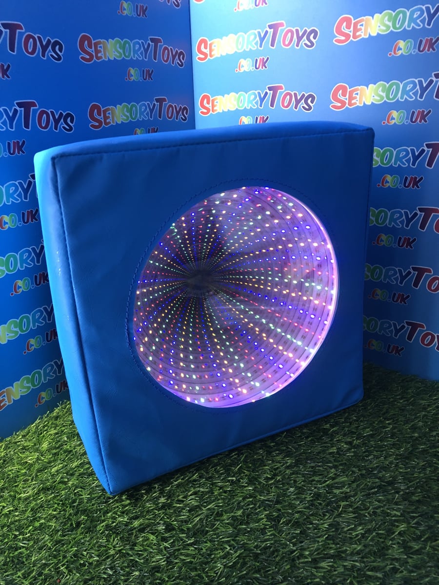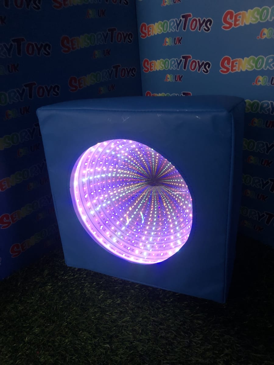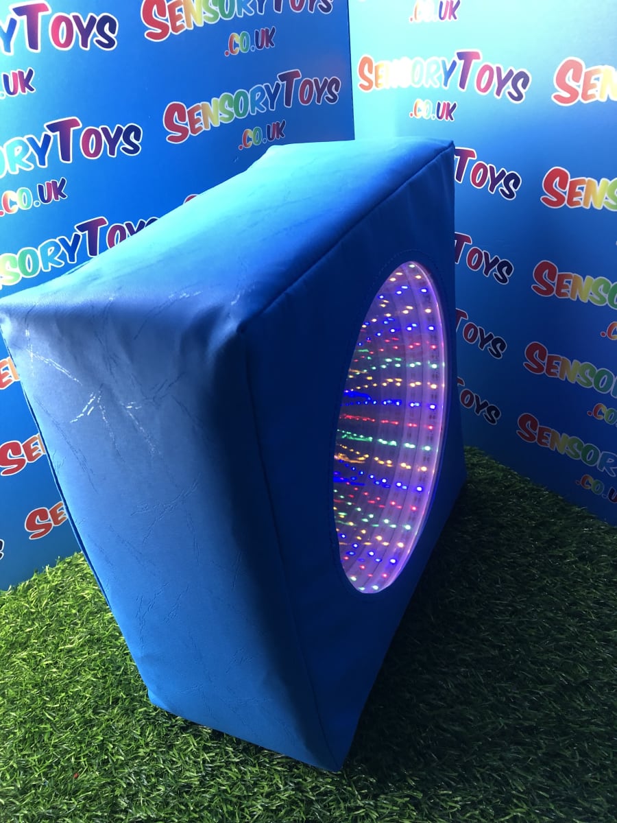Dive into a world of mesmerizing light up sensory resources with our exclusive Soft Play Sensory Mirror! A bespoke creation designed for endless sensory delight. This large, padded square beckons with its vibrant infinity light mirror nestled at the center, casting a spellbinding tunnel illusion that's both calming and enchanting. It's not just a soft play square; it's a journey into the infinite, providing a soothing visual escape.