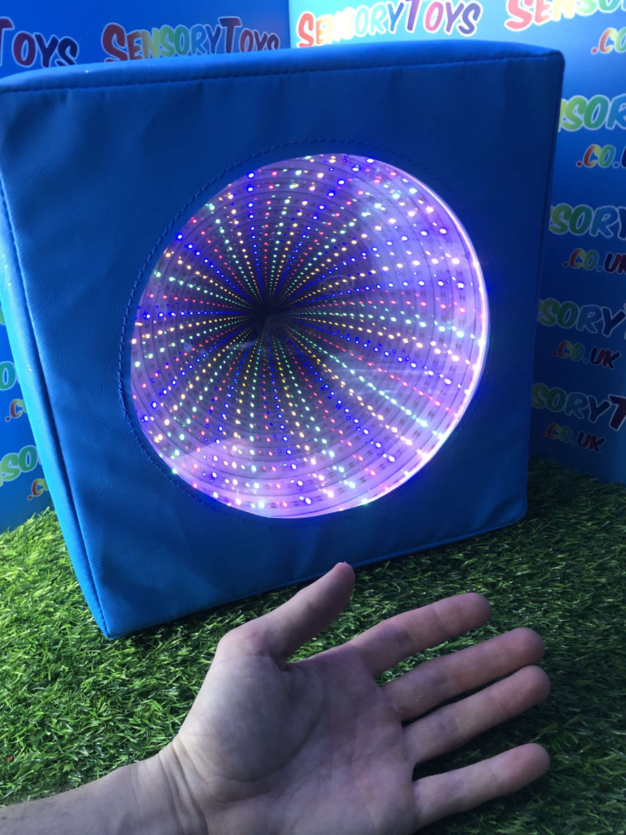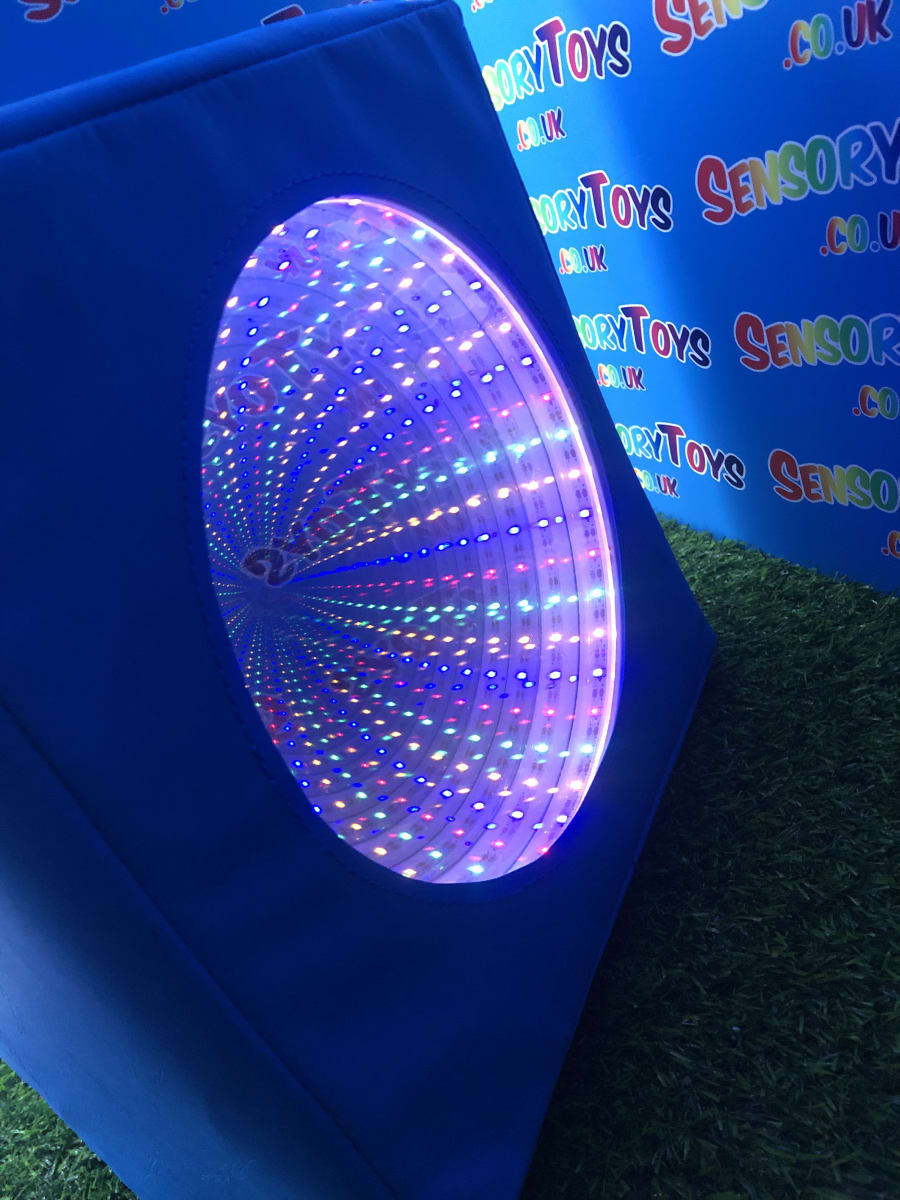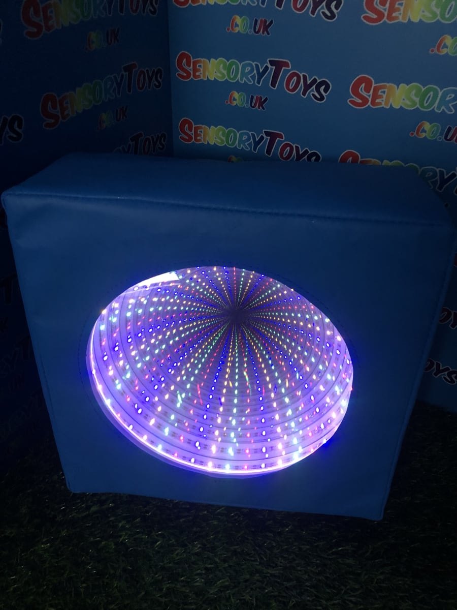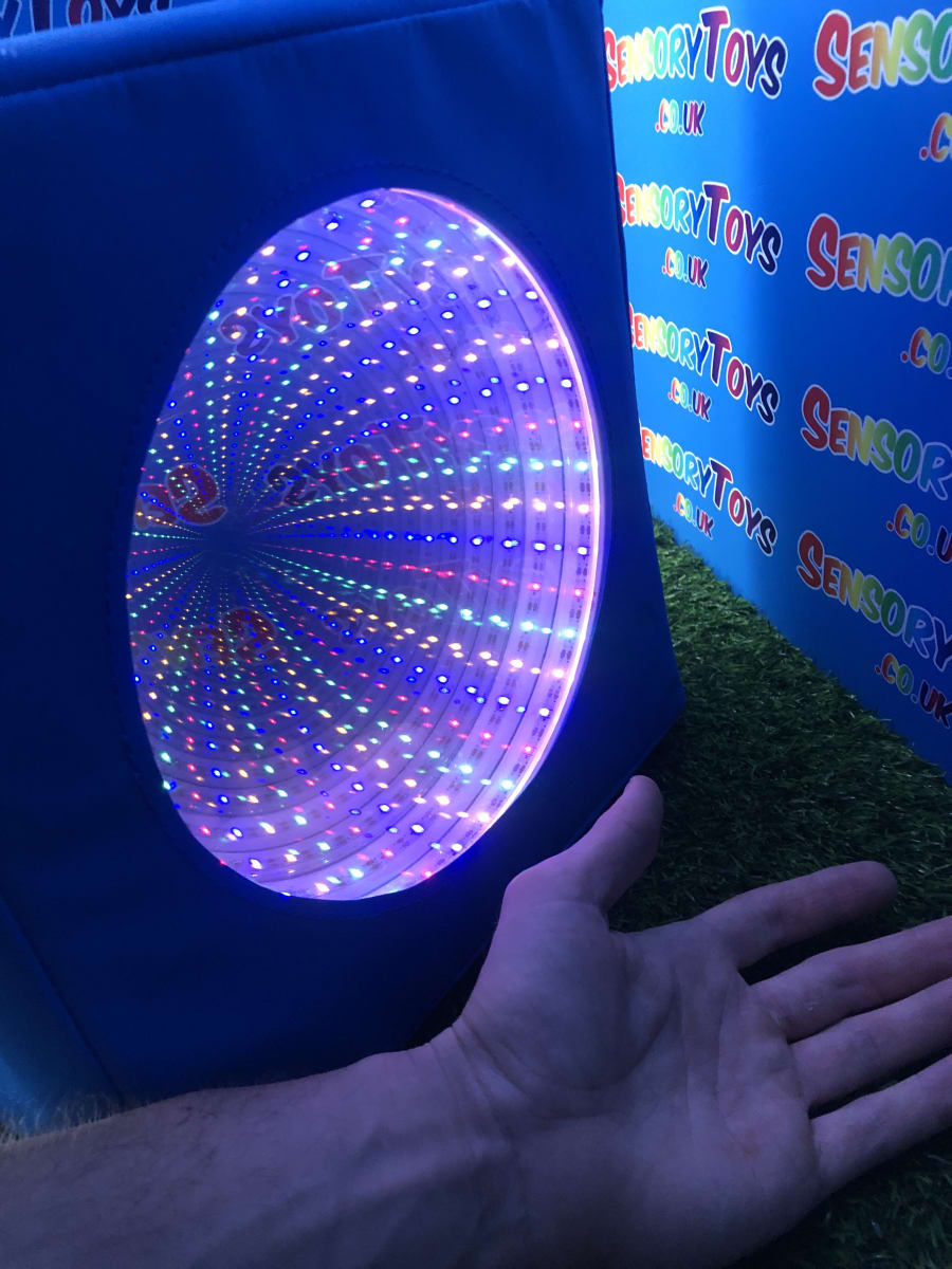 Crafted with durability in mind, this sensory aid is your ticket to on-the-go tranquility. Whether you're creating a sensory haven at home, in therapy sessions, nurseries, schools or just generally on the move, our Soft Play Sensory Infinity Mirror is your portable portal to relaxation. The never-ending tunnel illusion is not only visually captivating but also a tactile haven for sensory exploration.