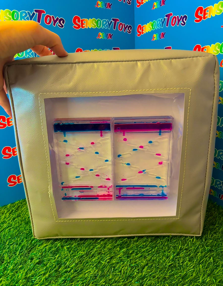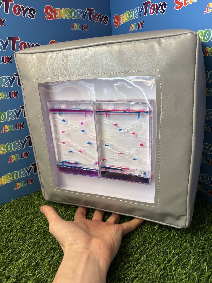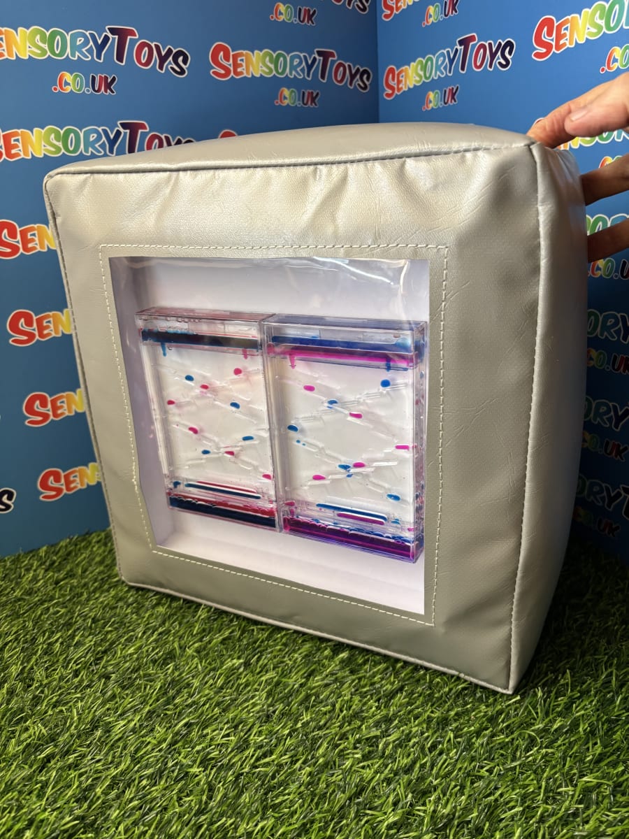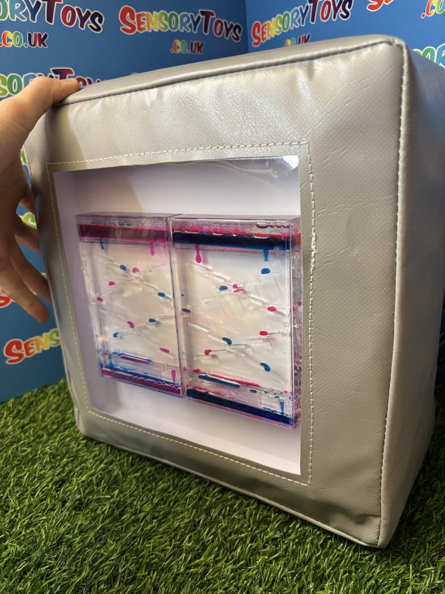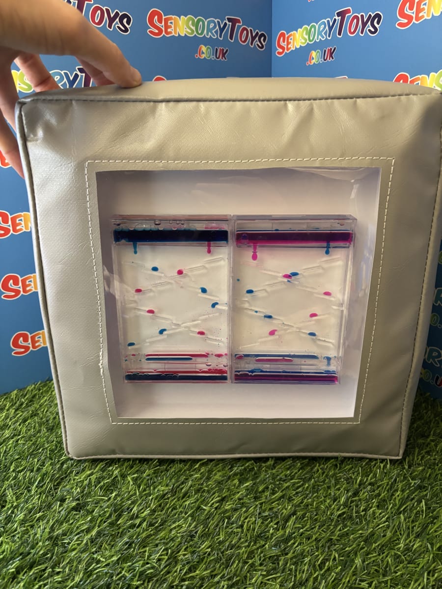 Experience the calming magic of our custom-designed soft play sensory visual aid. This high-quality, interactive resource is perfect for creating a soothing and engaging environment. Simply flip the soft play unit 180 degrees and watch as vibrant blue and pink droplets race down the stairs, captivating attention and promoting relaxation. Ideal for regulating focus and reducing stress, this screen-free activity offers a delightful way to unwind and enjoy a shared moment of fun. Features & Benefits • Engaging Visual Appeal: The gentle flow of droplets, guided by gravity, creates a mesmerizing and oddly satisfying effect that appeals to children and adults alike. Multicolored lights enhance the experience, adding a playful, sensory-rich touch. • Durable & Safe Design: Built for long-lasting use, the CE and UKCA-certified timers are securely encased in a soft play shell with a recessed design for added durability and safety. • Hygienic & Easy to Clean: The smooth, flat PVC surfaces are easy to wipe clean, ensuring a hygienic experience even with frequent use. • Versatile Application: Suitable for use in homes, classrooms, therapy sessions, or any professional learning environment. This sensory tool encourages shared enjoyment and interaction while providing therapeutic benefits. Specifications • Dimensions: Approximately 31cm x 31cm x 14.5cm. • Materials: Manufactured with flame-retardant PVC and high-grade, CFC-free flame-retardant foam. Complies with BS EN 1176-10:2023 and BS 8409:2009 standards for safety and durability. • Age Recommendation: Suitable for ages 7+ with adult supervision. Indoor use only. This zero-maintenance sensory tool is a perfect addition to any setting, offering relaxation, focus, and fun in one compact, high-quality package. Watch our personalised studio video for the best insight into this fab find!