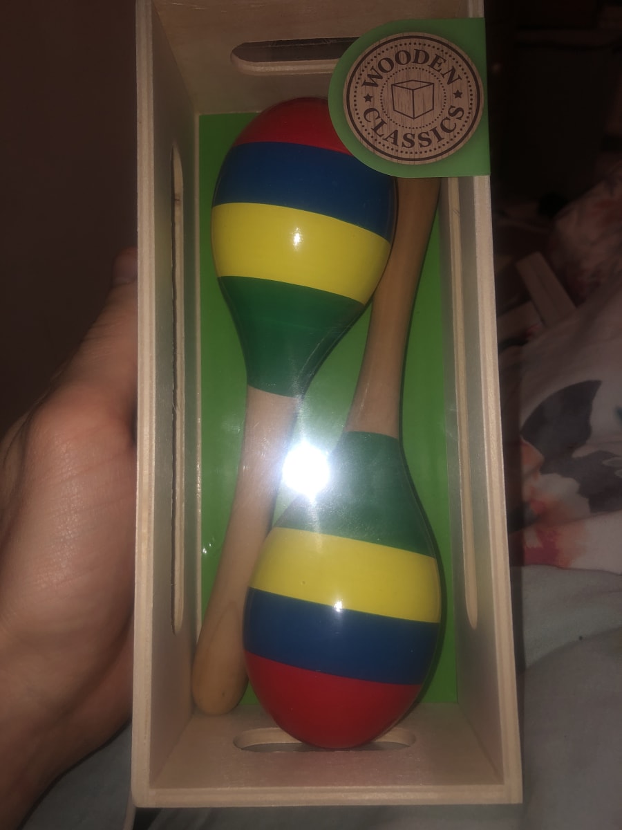 Shake shake shake your maracas! Babies and Children of all ages and abilities. A solid wooden design makes this product durable and recommended for all ages.
