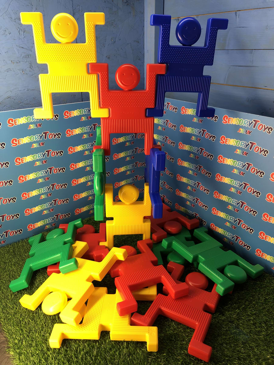 Giant stackable acrobats / gymnasts are a fantastic learning product for all abilities of children. You can stack them up, sideways, laying down, the combinations are endless. A very popular product for children that enjoy building based play. Braille is also featured on each stackable gymnast for visually impaired users.