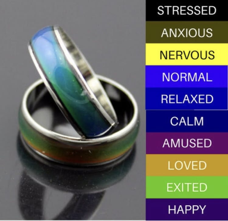 Our small band mood ring our beautiful and great for a subtle mood ring look. This traditionally designed has great color changes and is accompanied by a meanings chart. As is in the name the ring changes colour to reflect your current mood and emotions, based on temperature. The ring colour varies from black initially to blues and green and a number of alternative colours. So... what mood are you in?